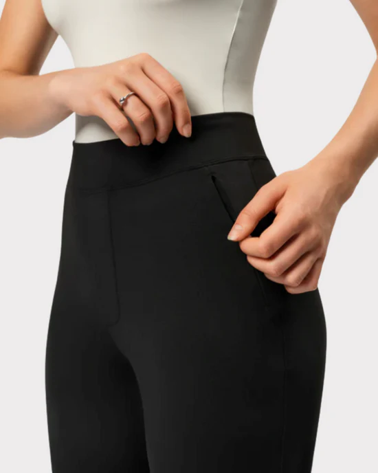 «Verdens beste bukse!» Fantastiks god kvalitet og passform. «Yoga-pant» som også kan brukes brukes som penbukse. Krøller ikke, tungt fin fall og med glidelåslommer.