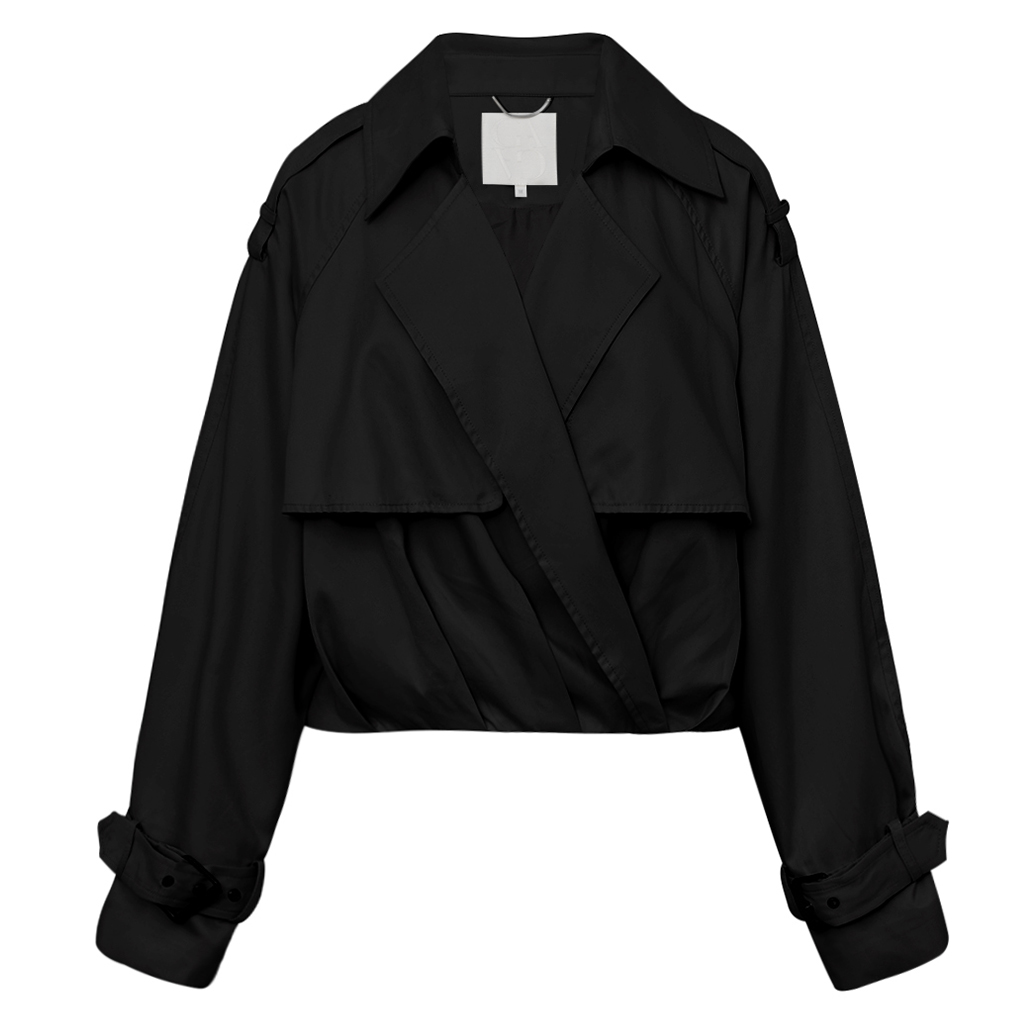 Nydelig kort jakke i god kvalitet med fine folder i midjen som gir et moderne bomber-utseende. Den romslige passformen og fine spennedetaljer på ermene gir ekstra stil, mens trenchcoat-inspirasjonen gjør den til din nye favorittjakke.