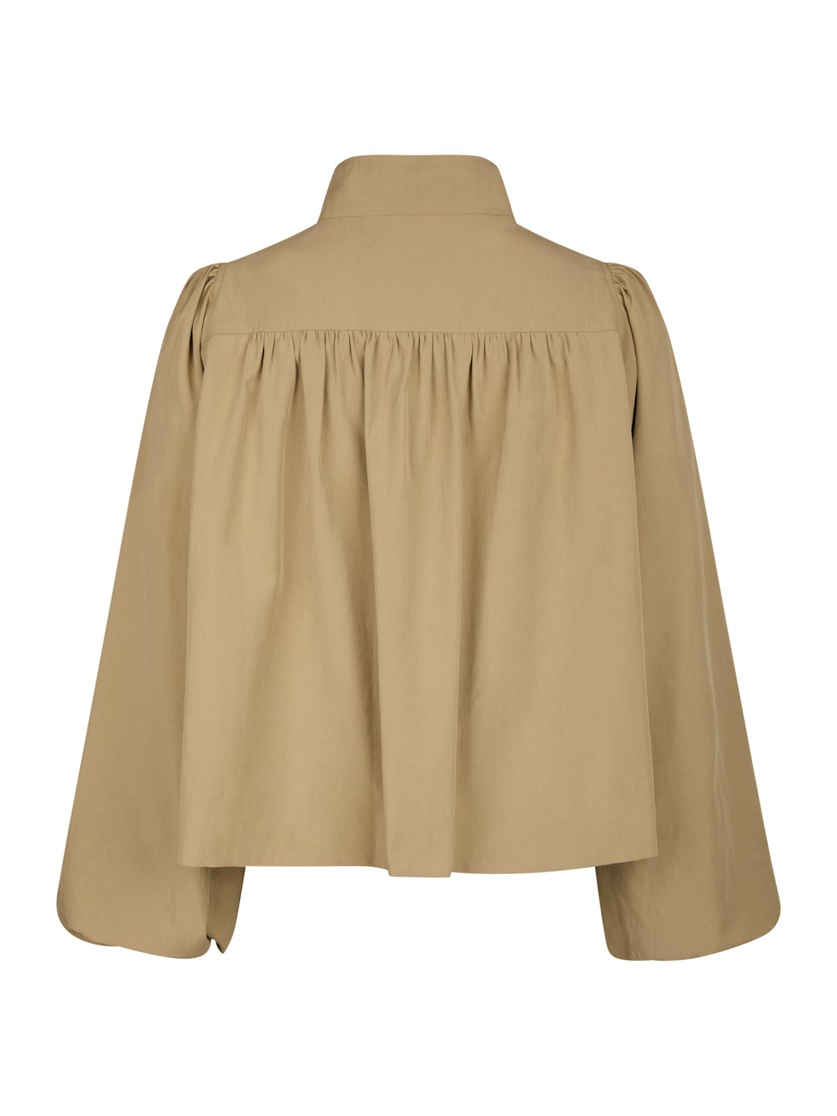 Kort jakke med høy hals. Jakken har frontlommer og en løs passform med vide ermer nederst. Superfin variant av trenchcoat.