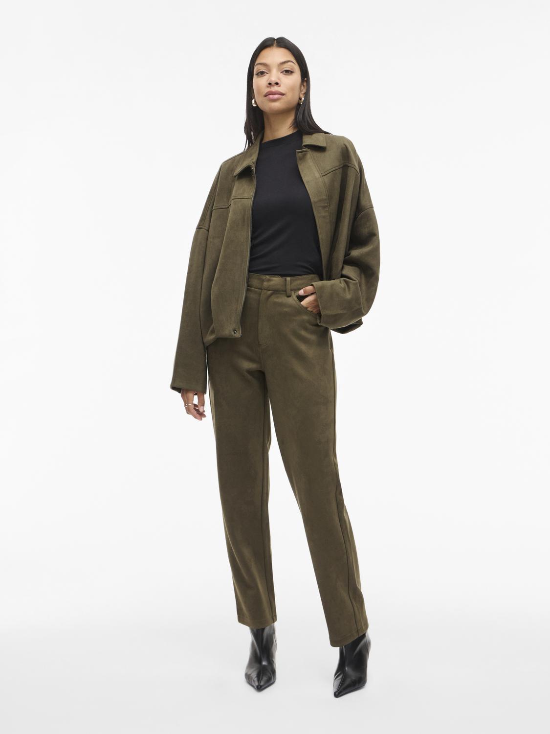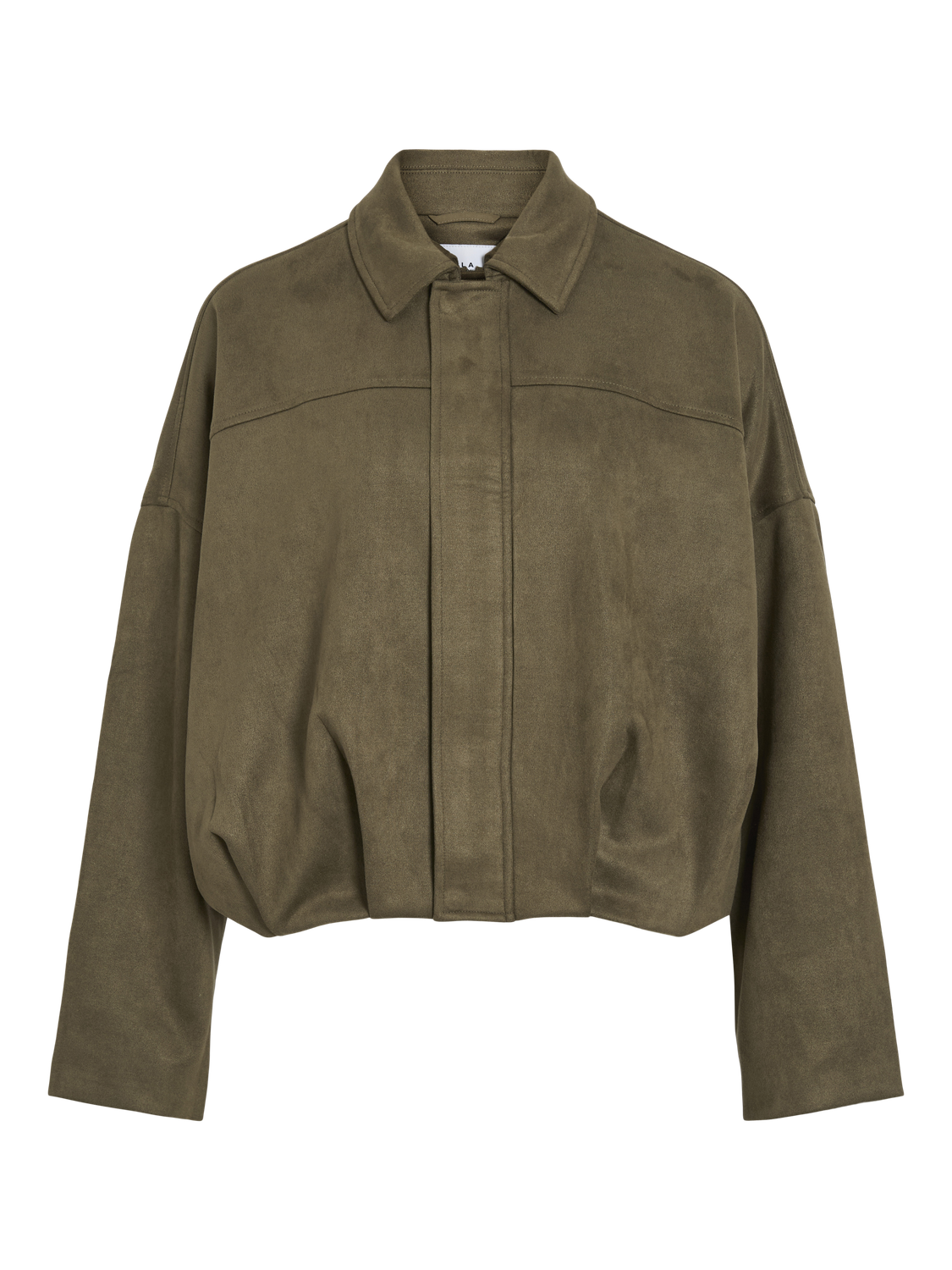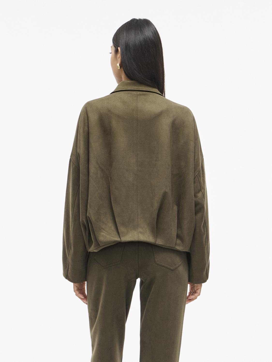 Bomberjakke i fin grønnfarge – nubuk-kvalitet. Løs og ledig passform, god lengde på ermene.