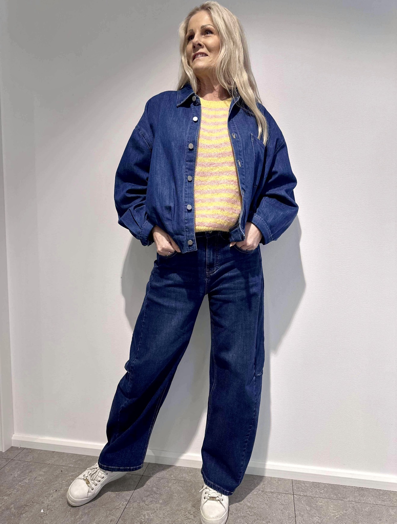 Innhold: 69% bomull, 28% polyester, 3% elastan.