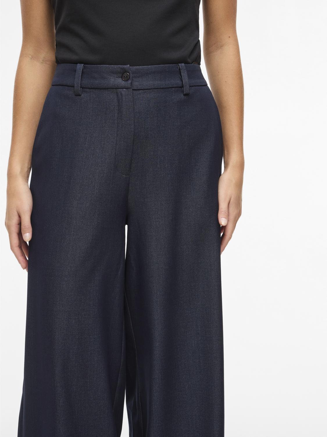 Mørke blå bukse/jeans i lett og fin kvalitet. Rette bein, strikk midjen bak.