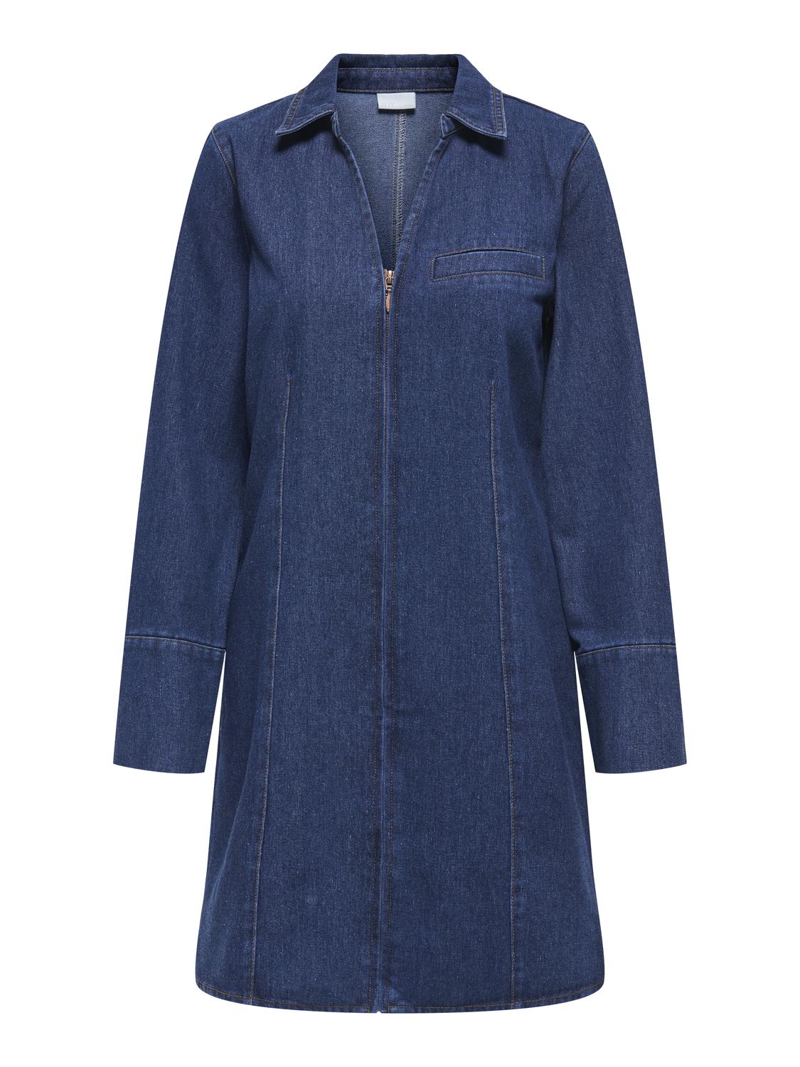JDYSALLY ZIP STITCH L/S DRESS DNM er en stilren og moderne kjole i mørkeblå denim, perfekt for en avslappet, men likevel trendy look. Med 3/4 ermer og en elegant glidelåsdetalj, gir denne kjolen et unikt preg som skiller seg ut i mengden.