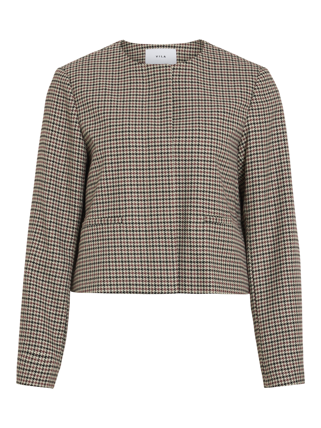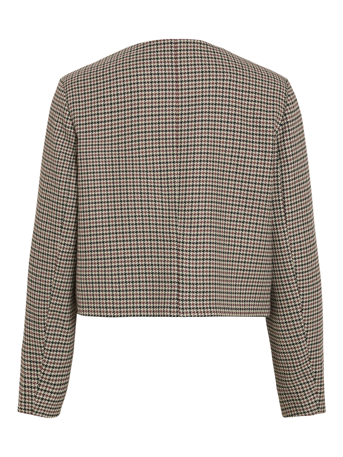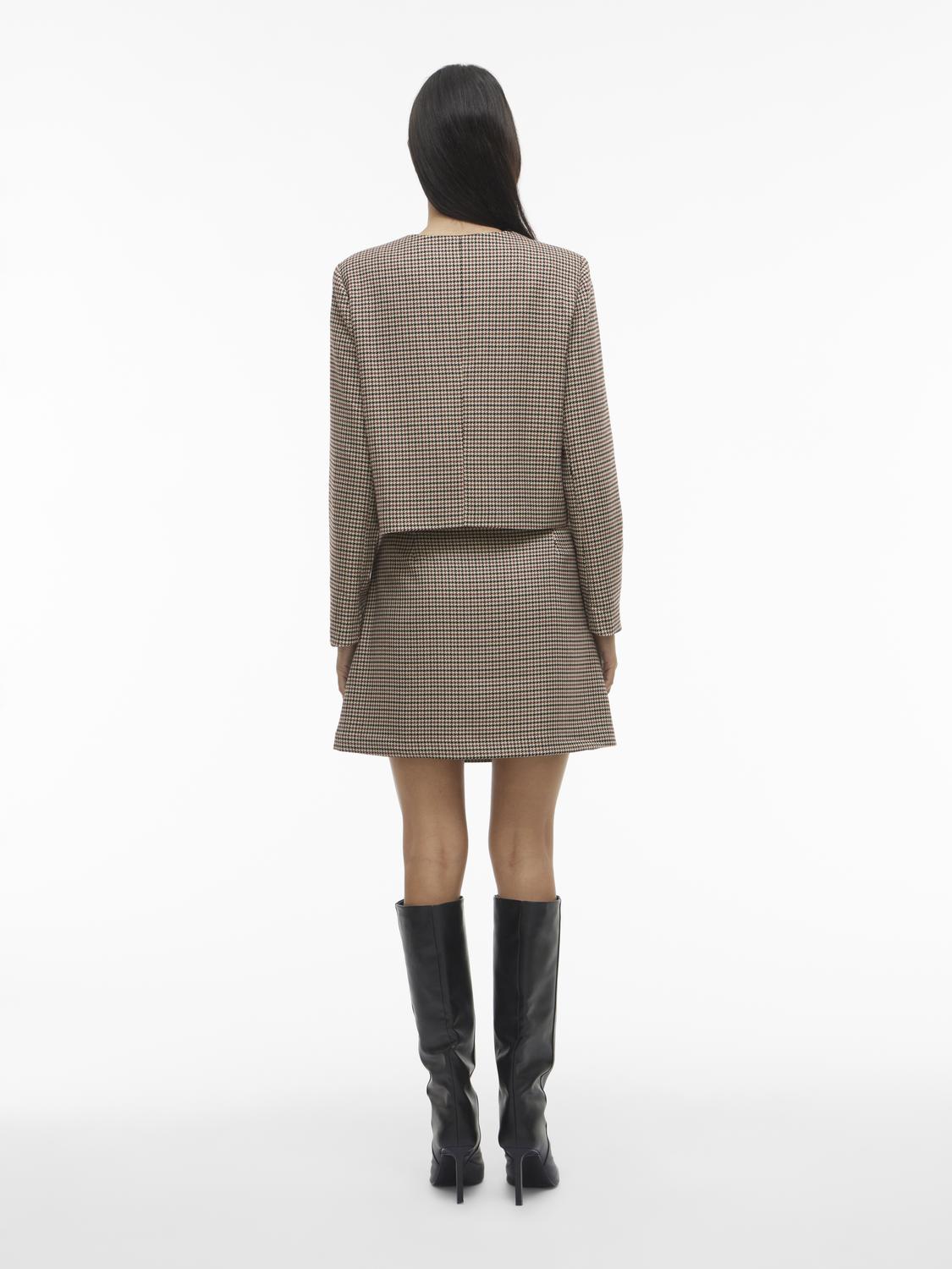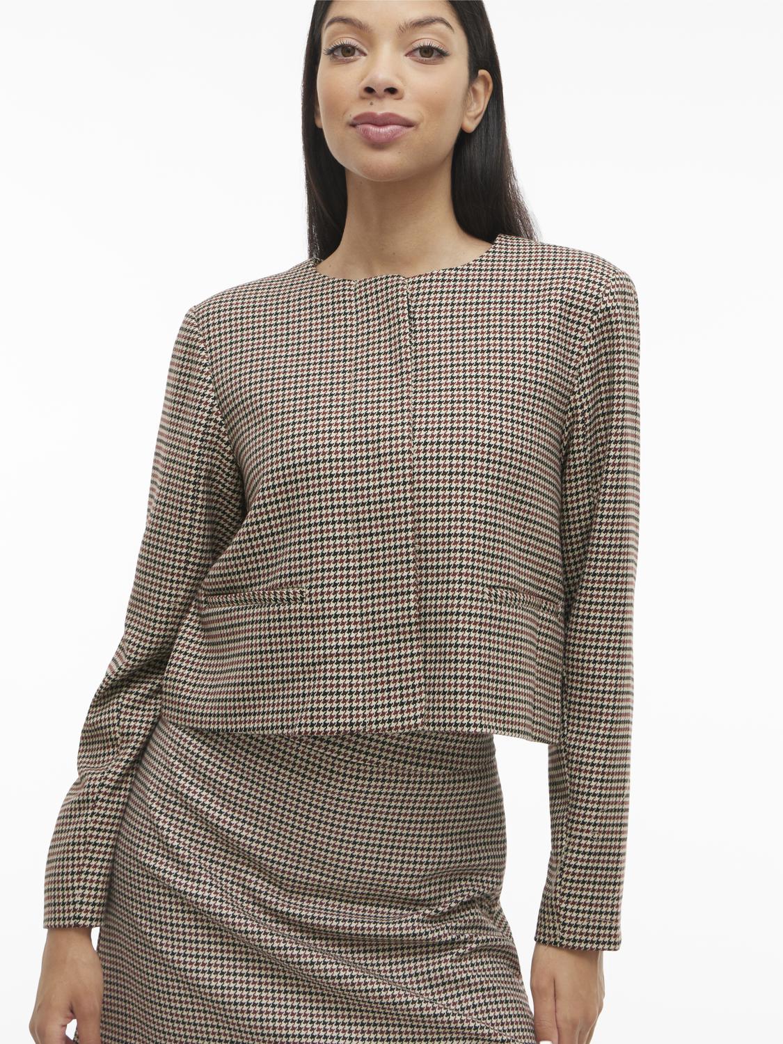 Kort blazer med brunt, sort og beige mønster i hundetann!