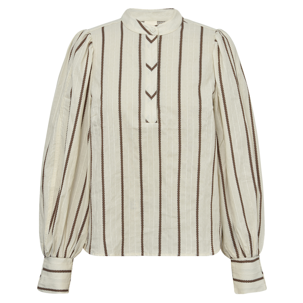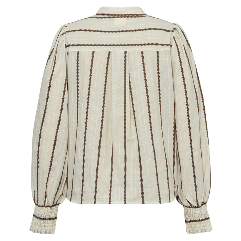Off white bluse med brune striper. Klassisk og fin bluse i Gossia-stil!
