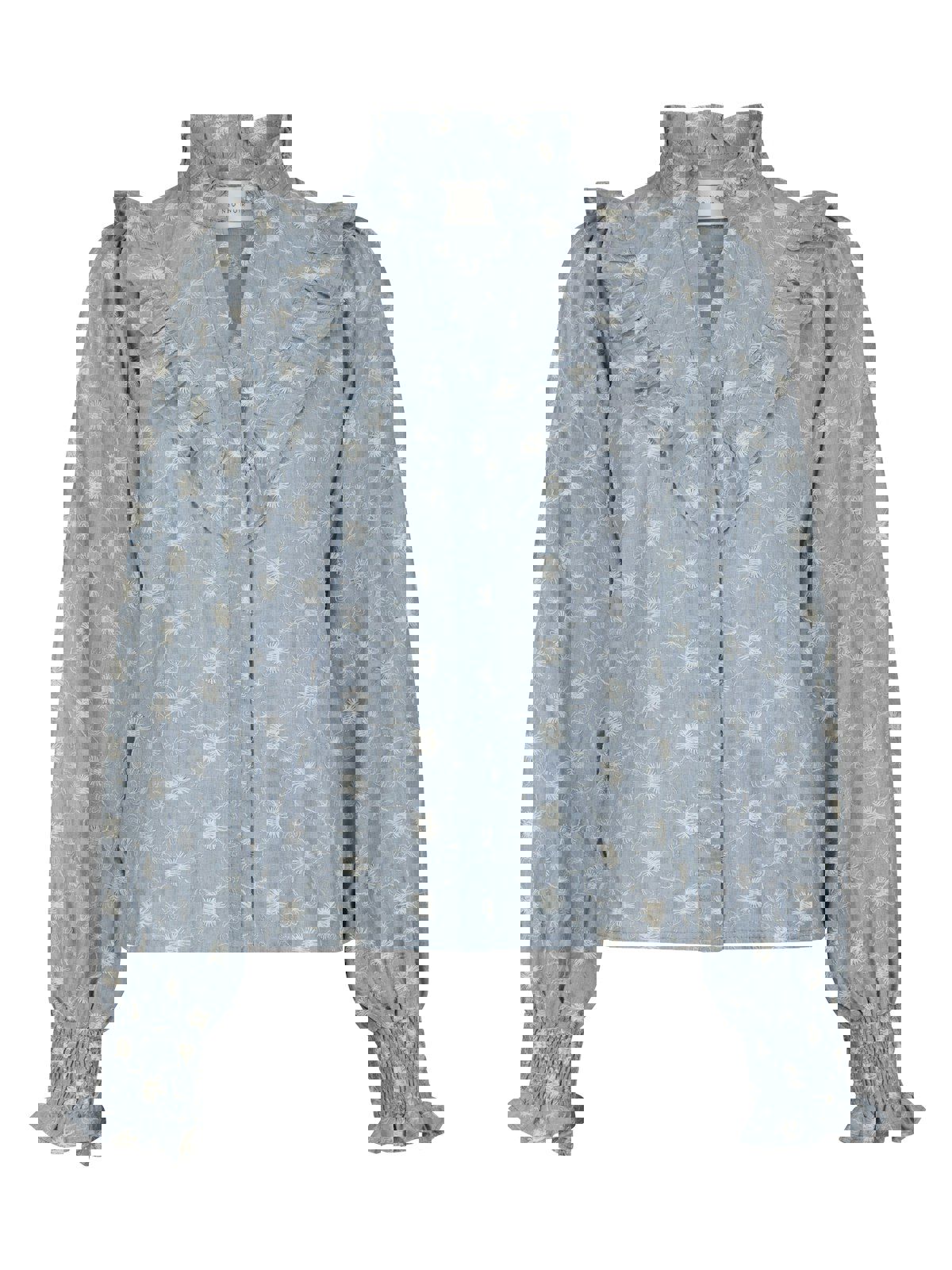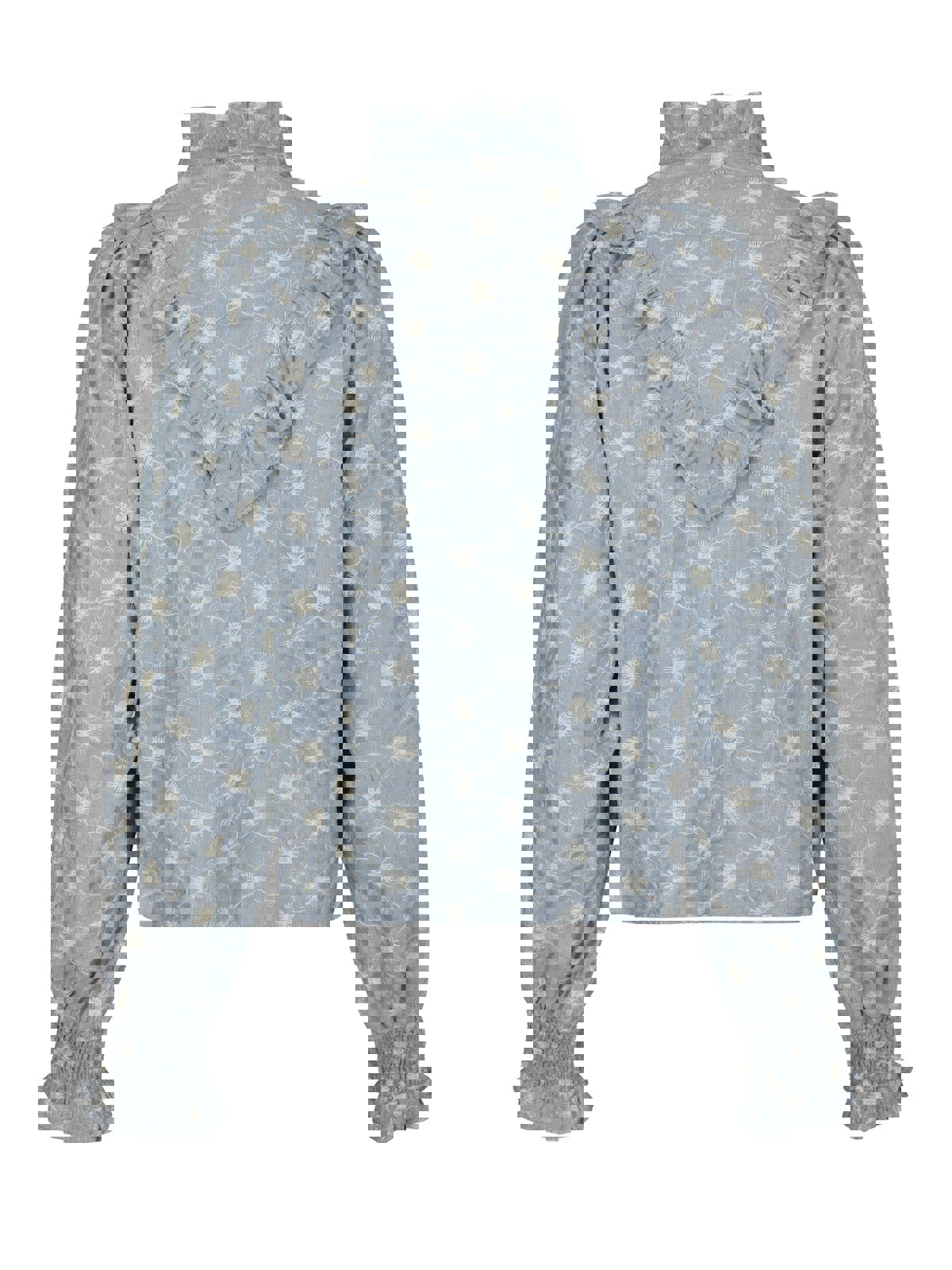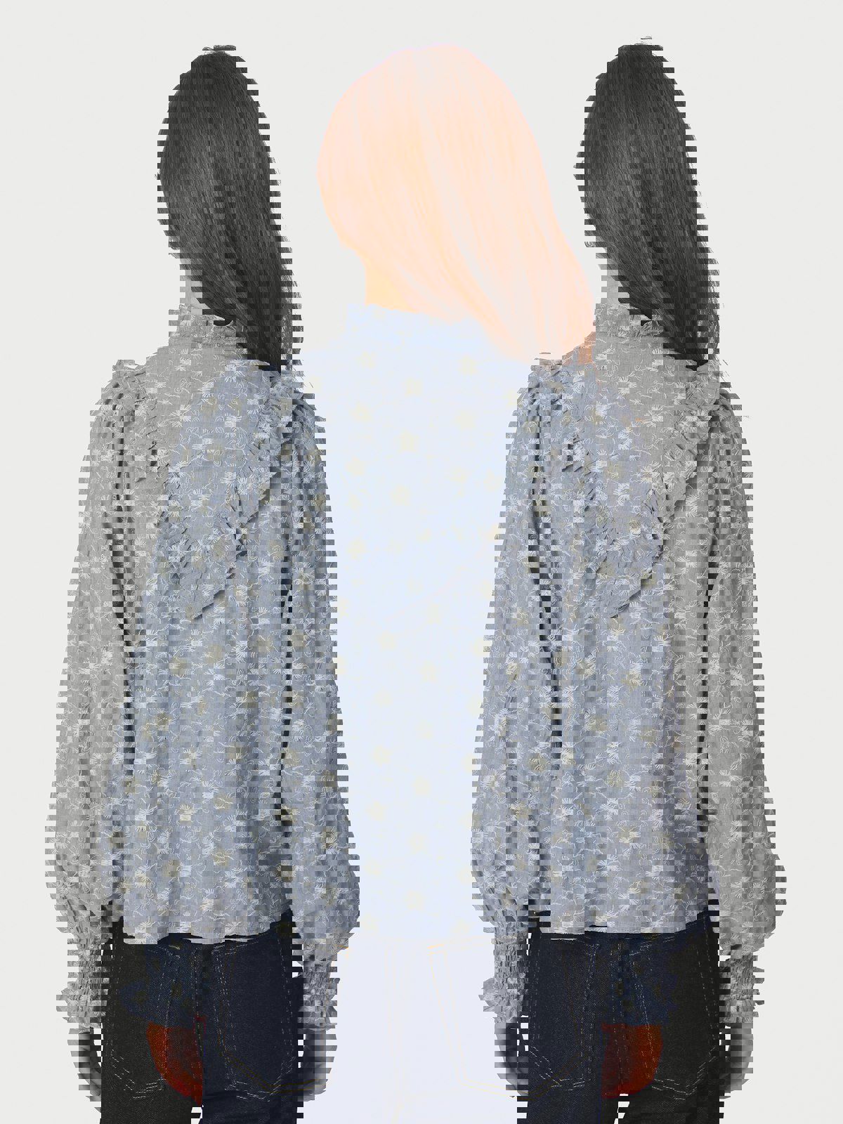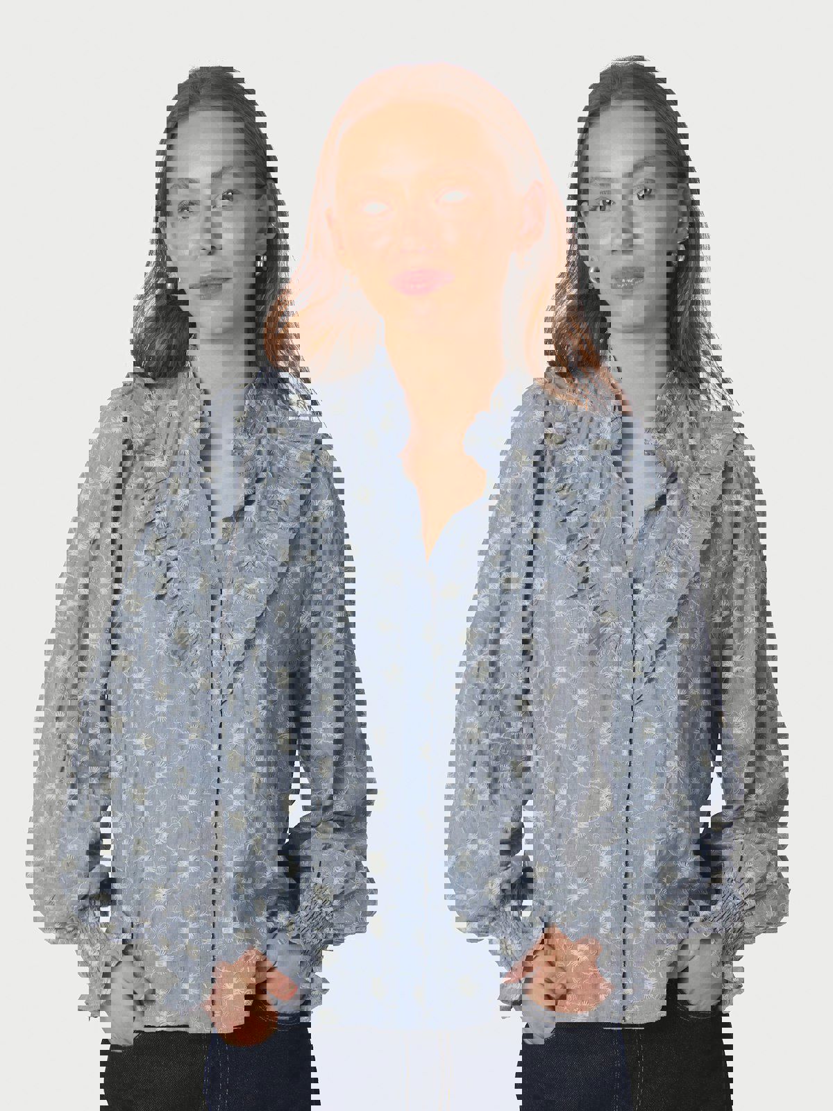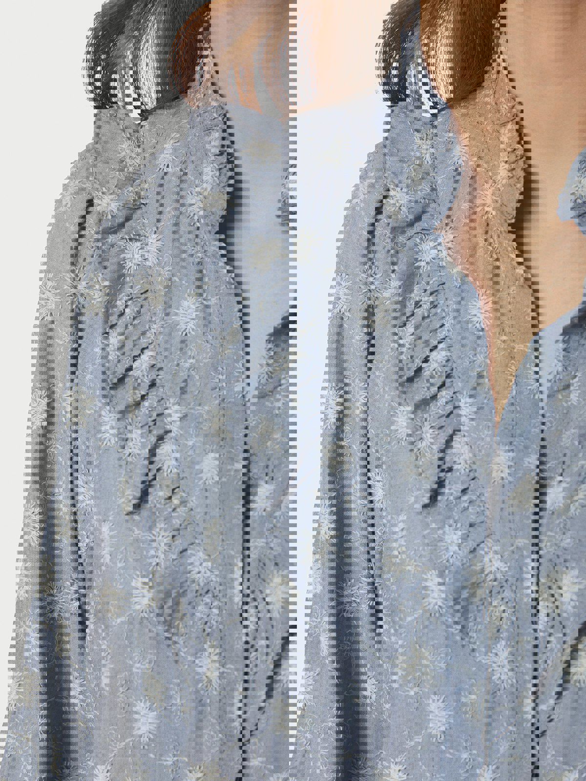 Dekorativ bluse med lange ermer og en feminin, men avslappet passform. Blusen har volanger og kommer i en fin, myk kvalitet med broderier.