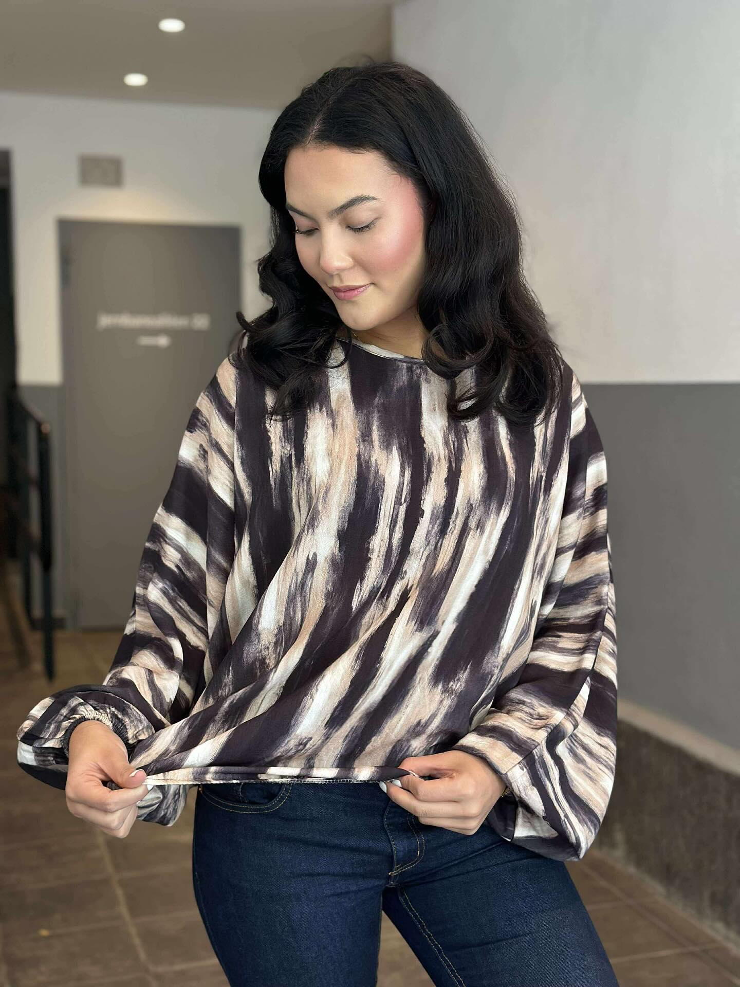 Topp/bluse med mønster, strikk nederst.