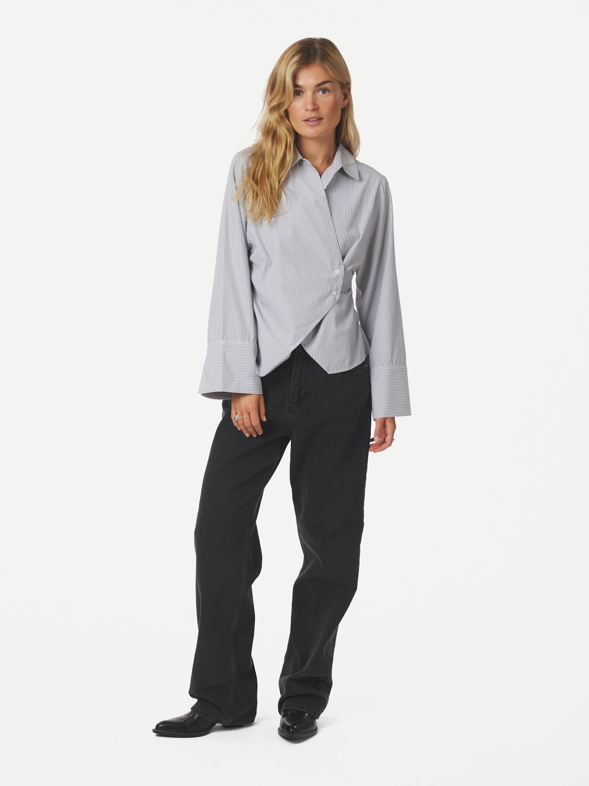 Fin skjorte med volangdetaljer i sidesømmen. Modellen er 176 cm høy og har på seg størrelse 36.