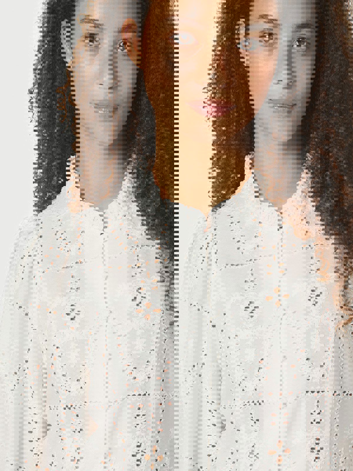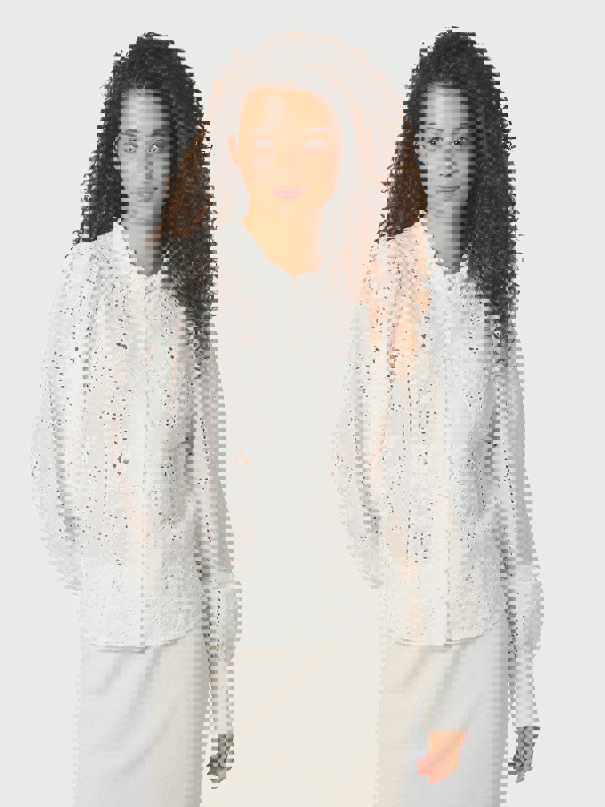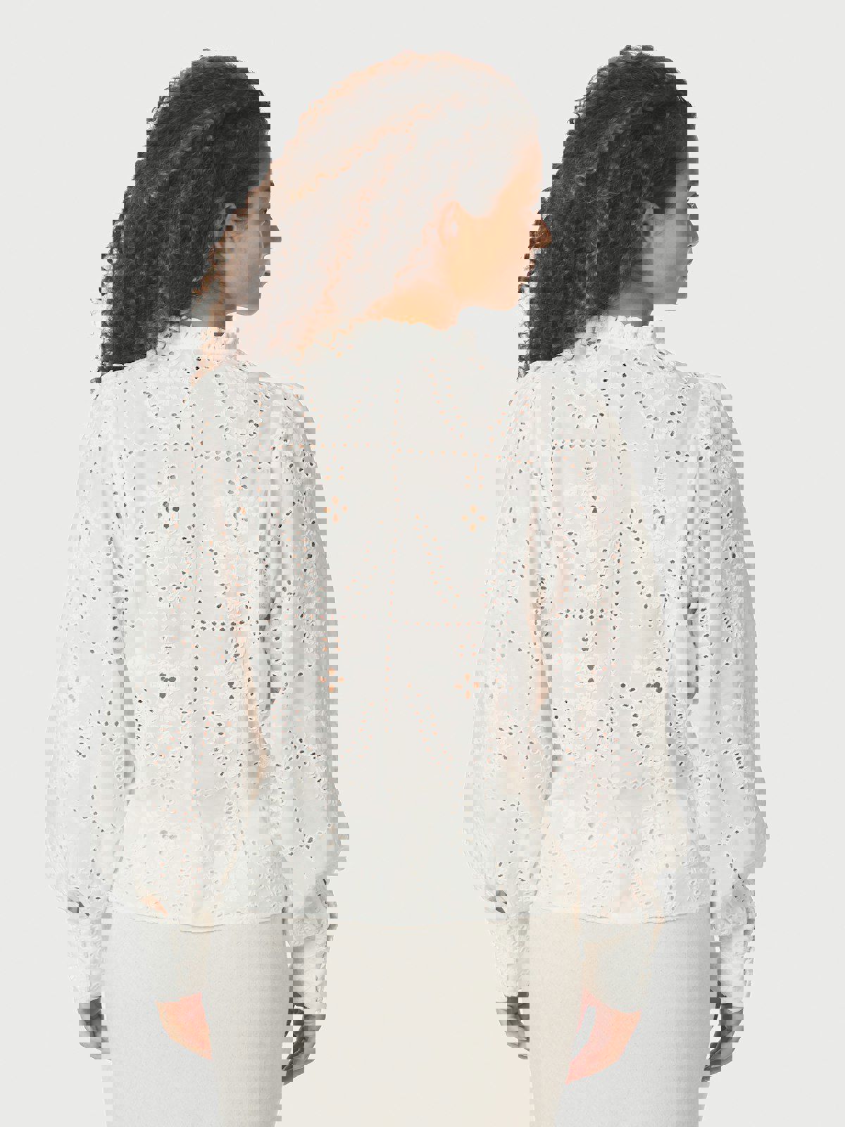 Feminine bluse med knapper foran. Blusen kommer i en blomsterbroderi kvalitet.