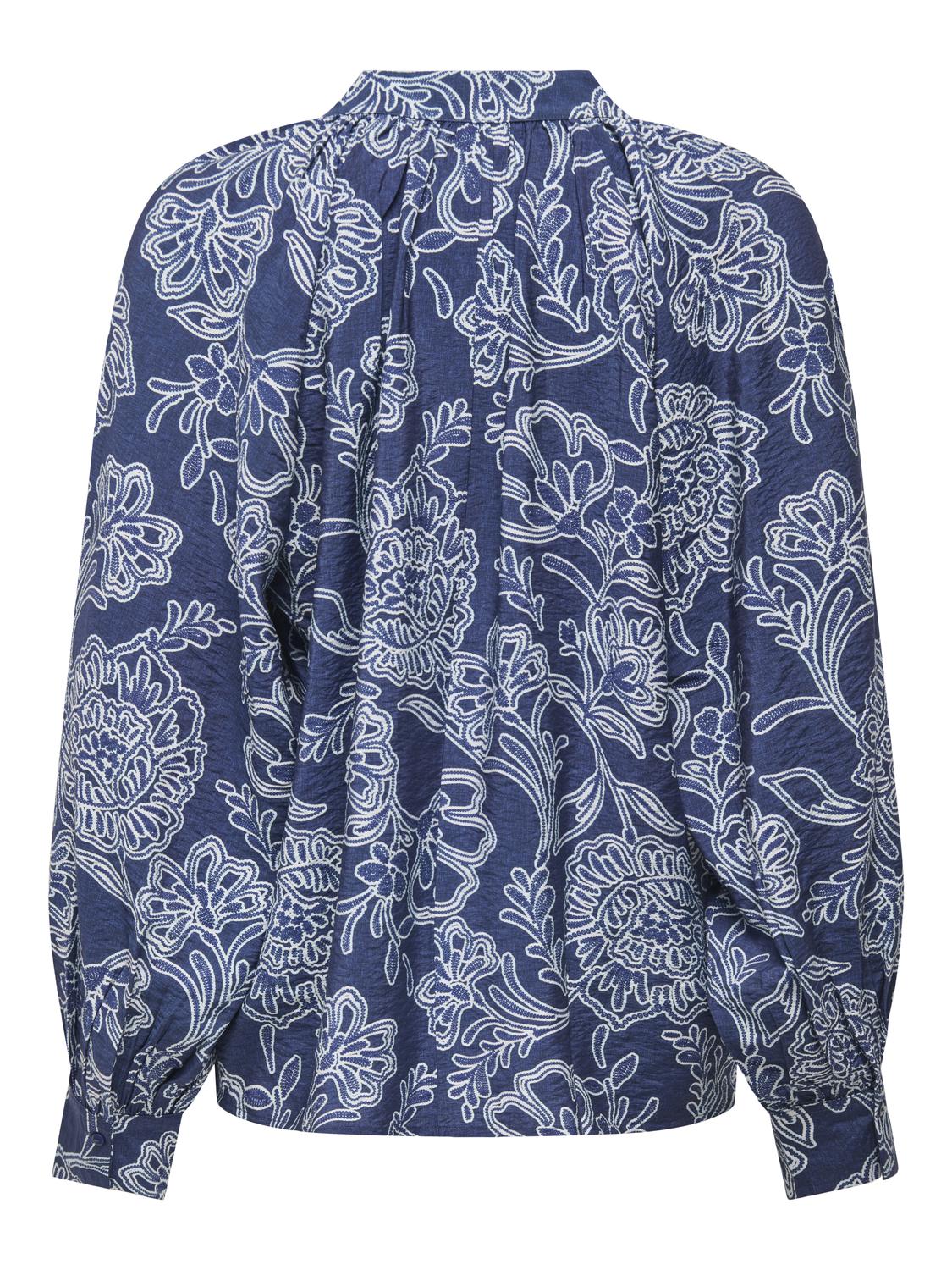Fin blå bluse med mønster.