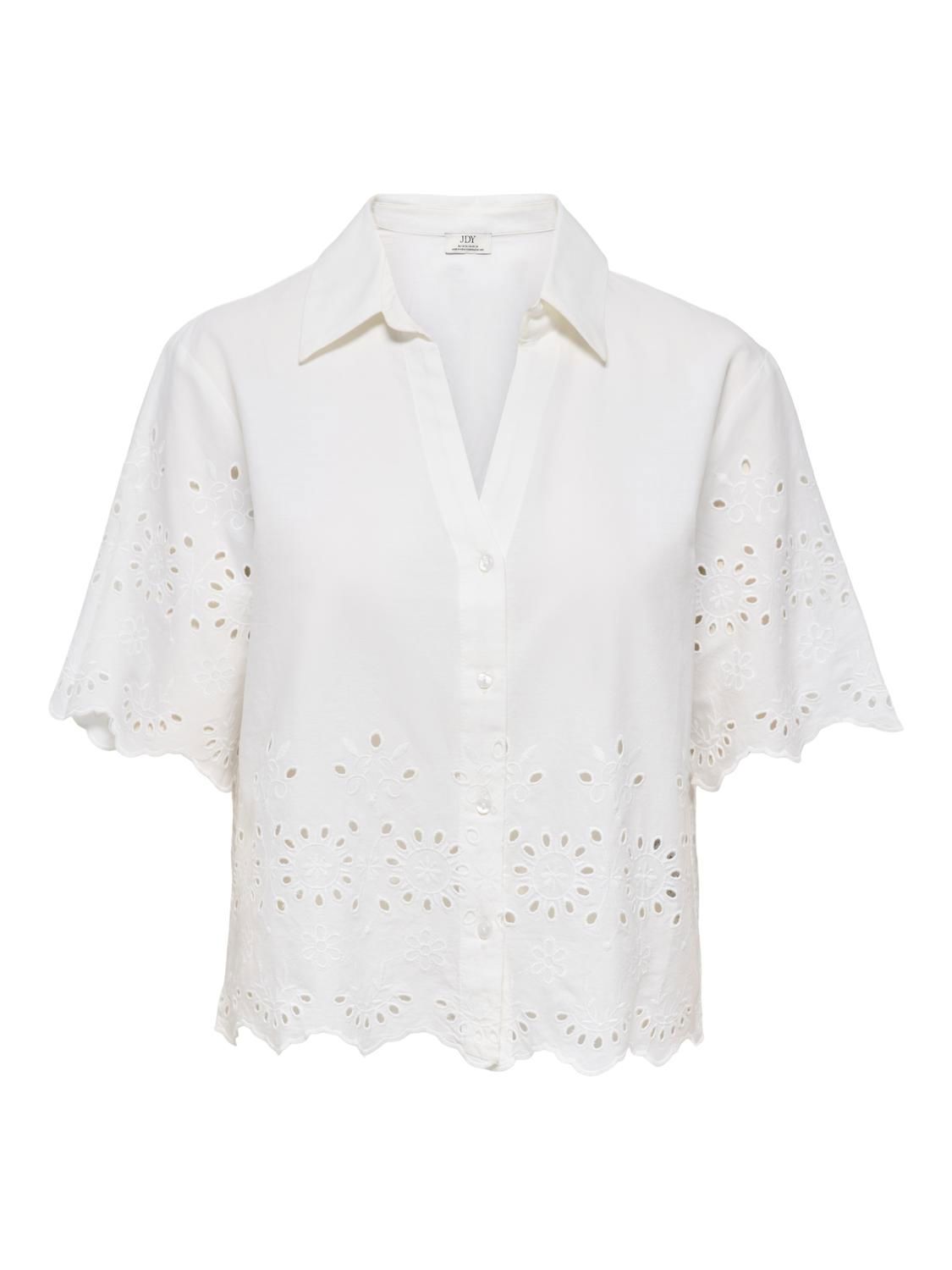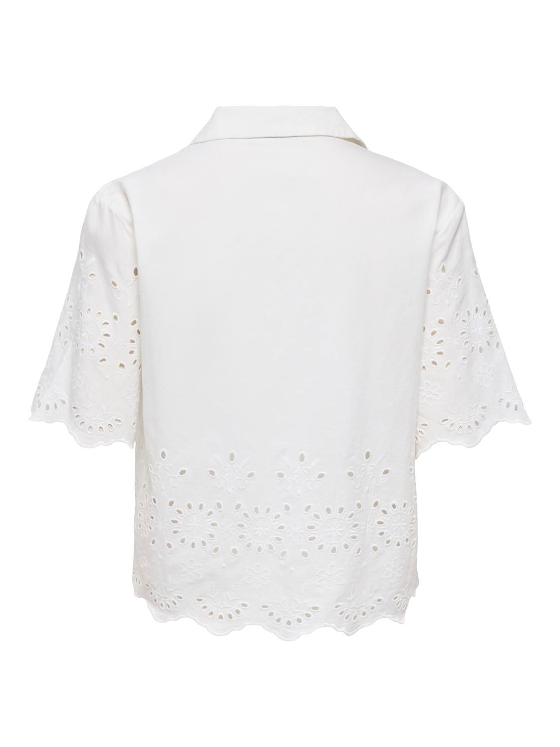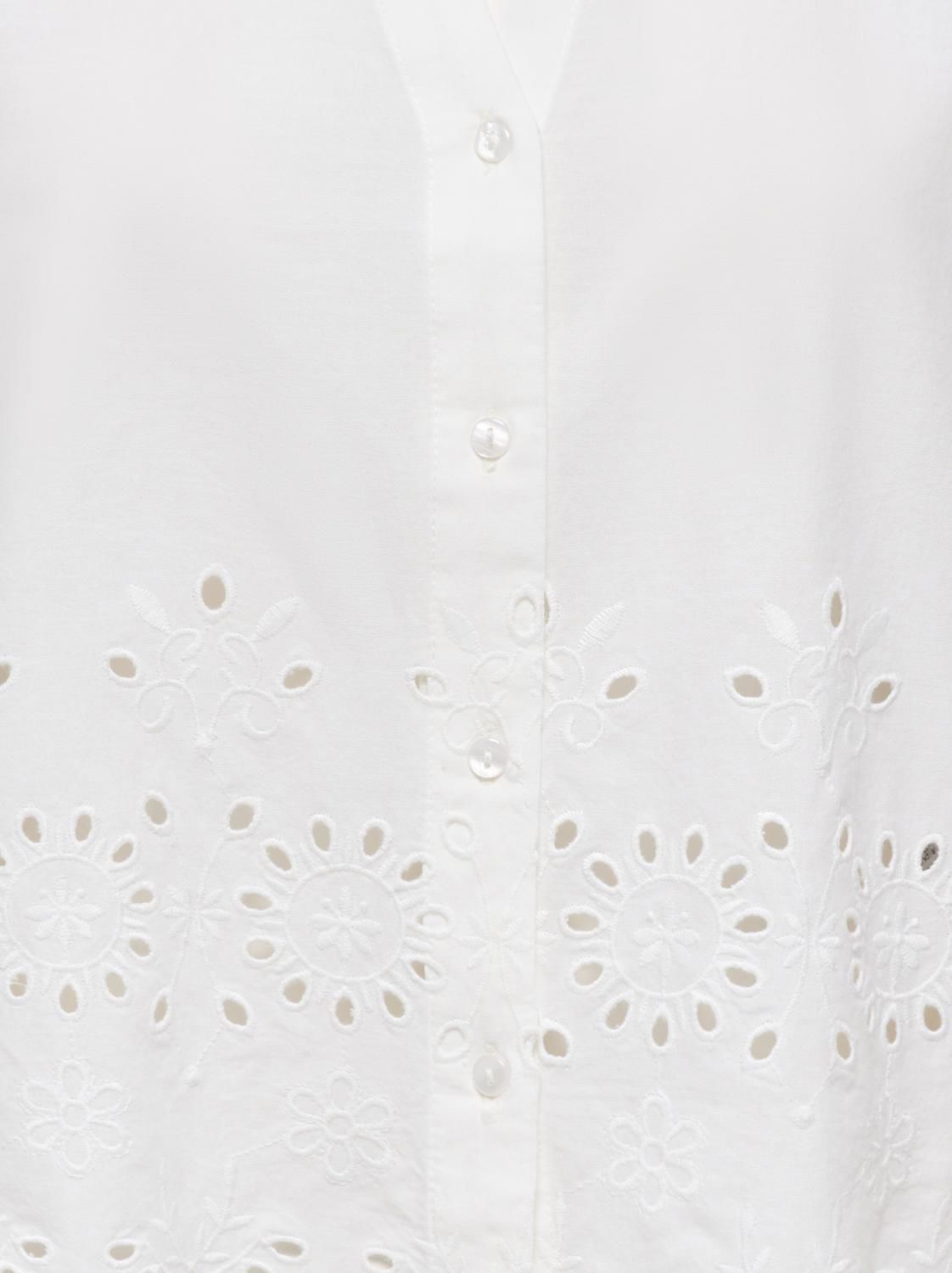 Bluse med ton-i-ton broderier. Løs og ledig passform.