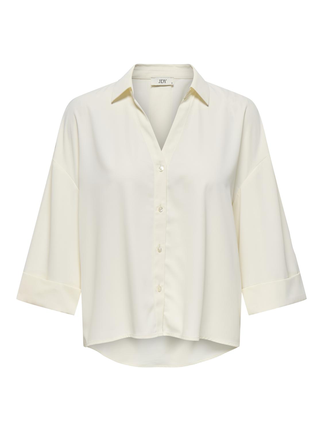 Off white bluse med 3/4-dels lange ermer og v-hals. Løs og ledig passform.