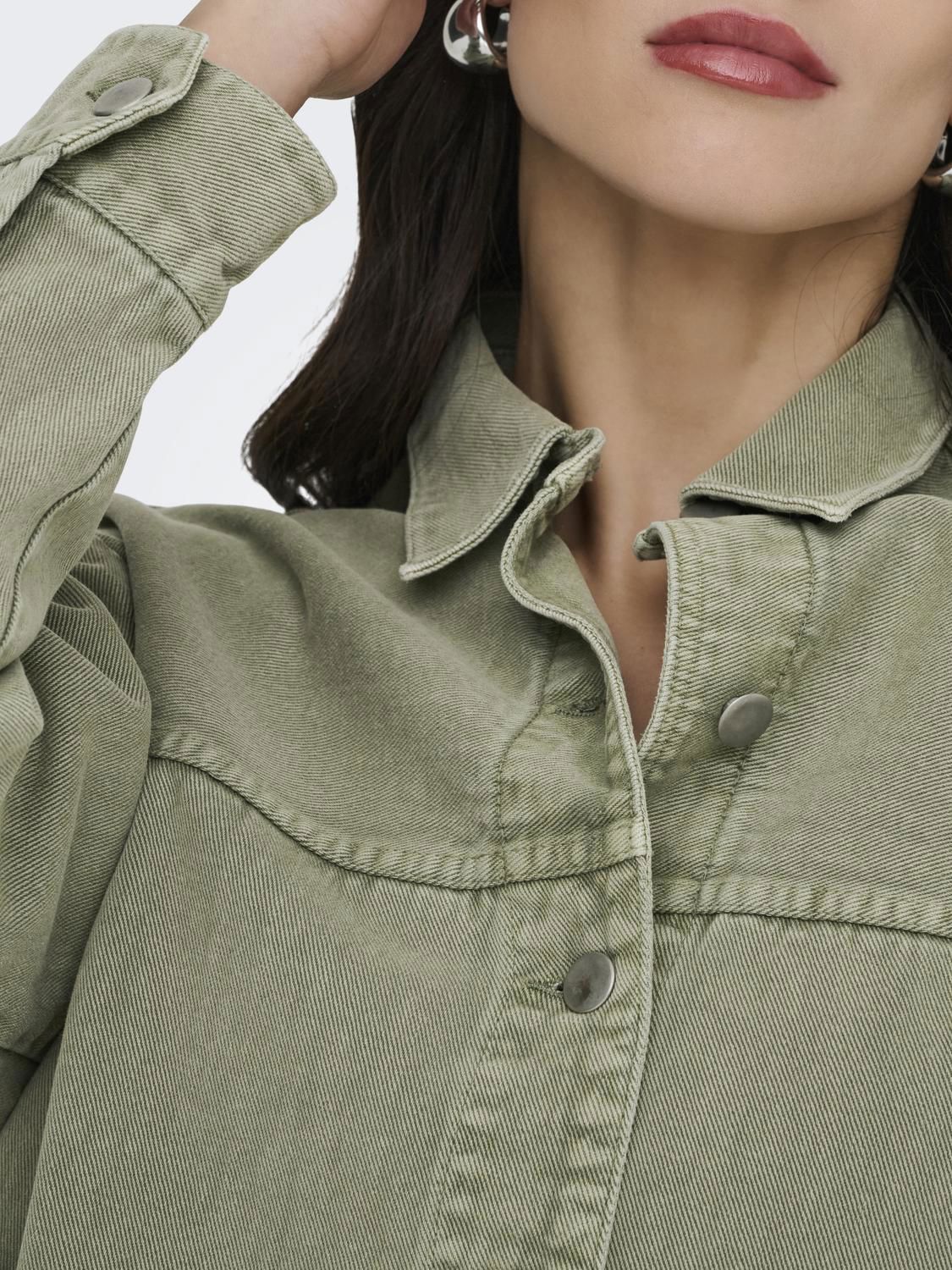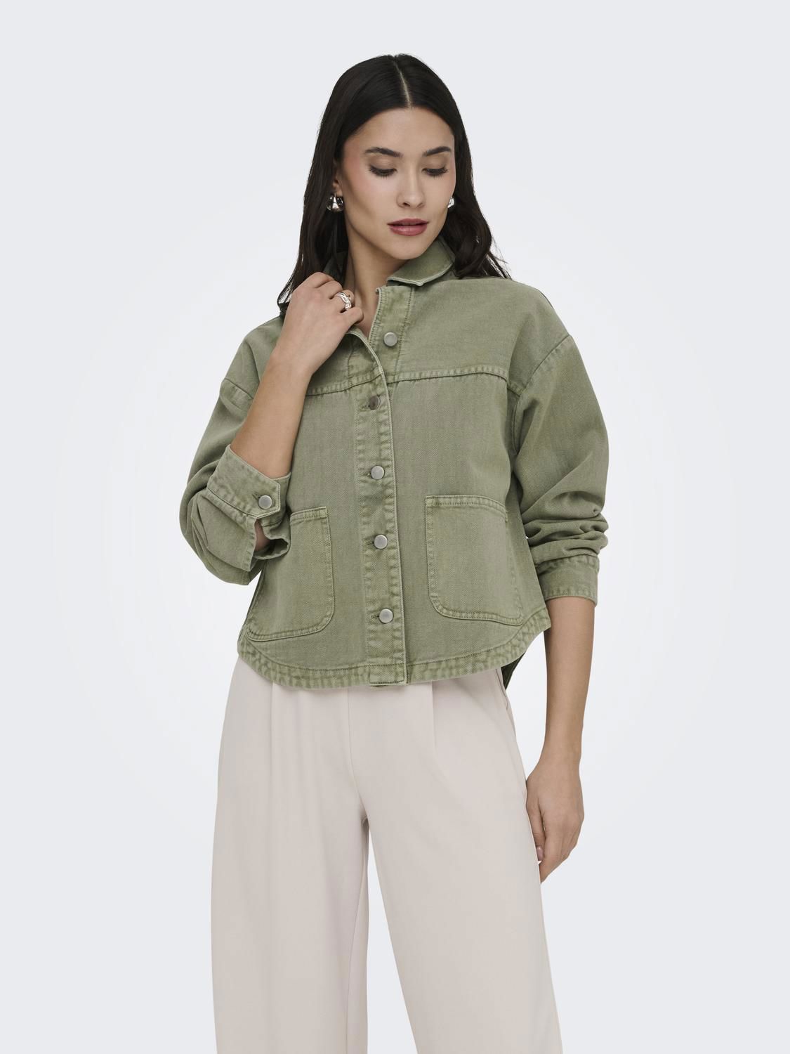 Shacket i grønn denim. Stilig overshit som kan styles til mye!