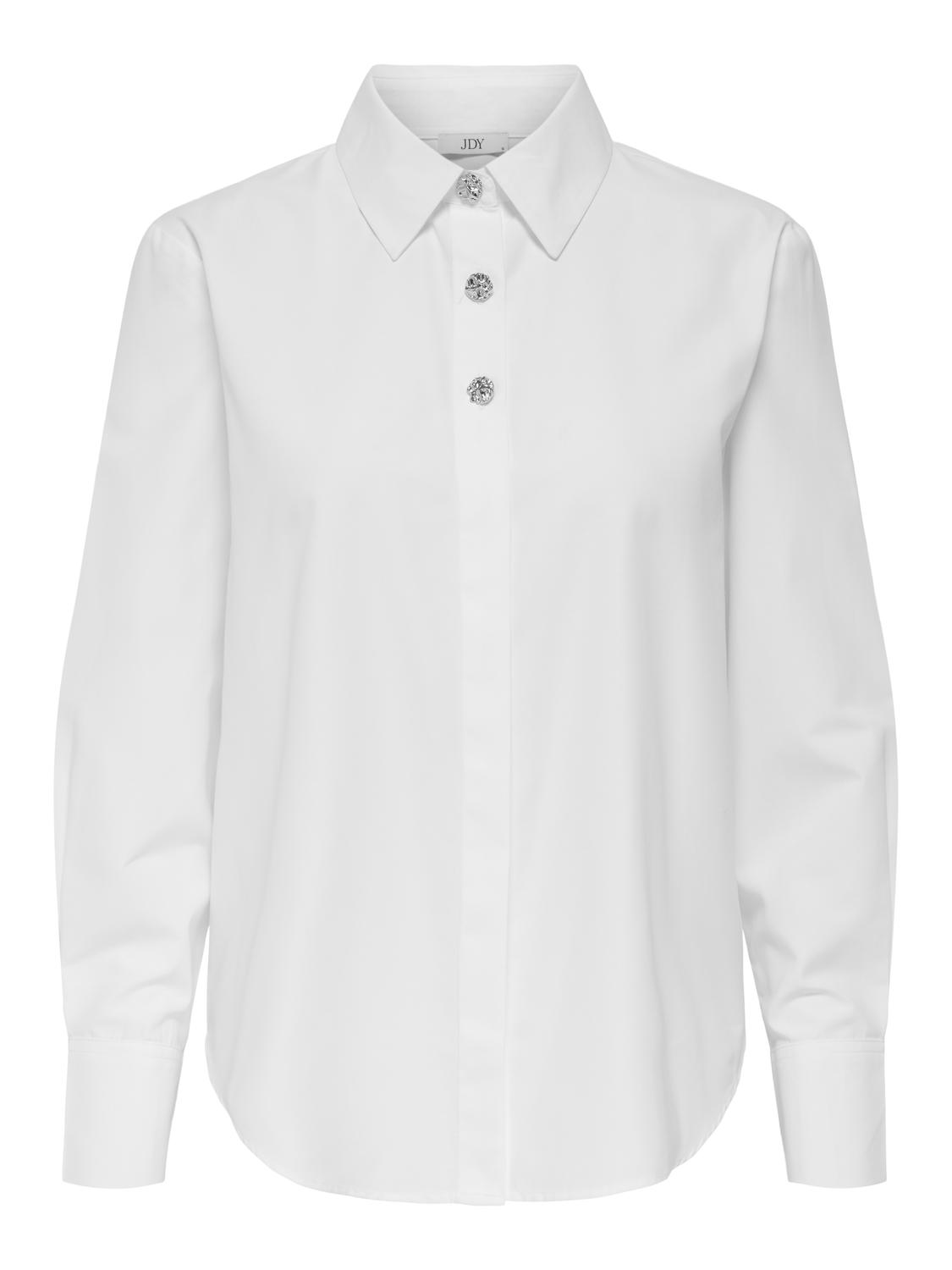 Hvit skjorte med fine knapper. Løs og ledig passform, litt a-shape.