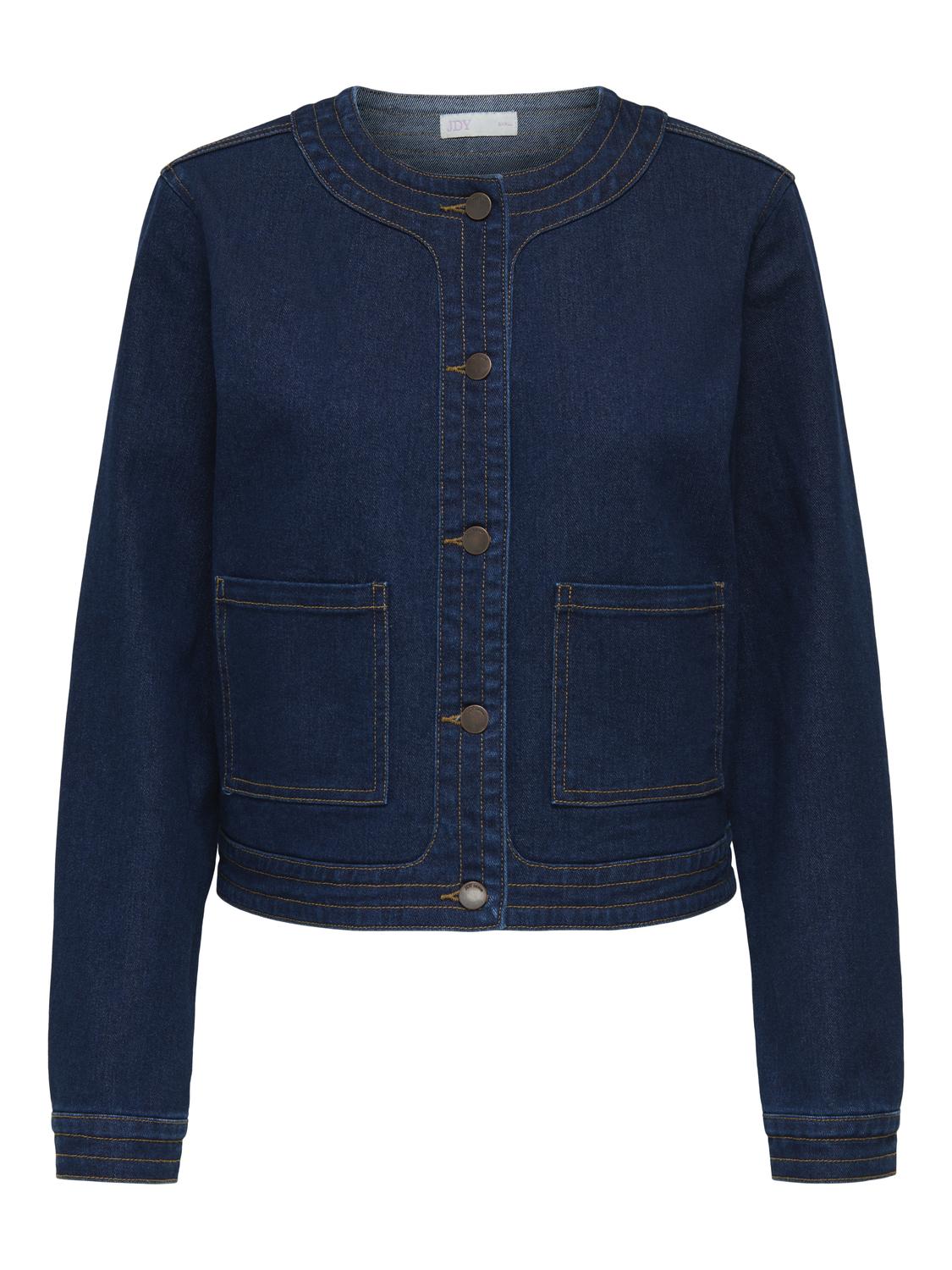 Mørke blå skjortejakke i denim. Kule kontrastsømmer.