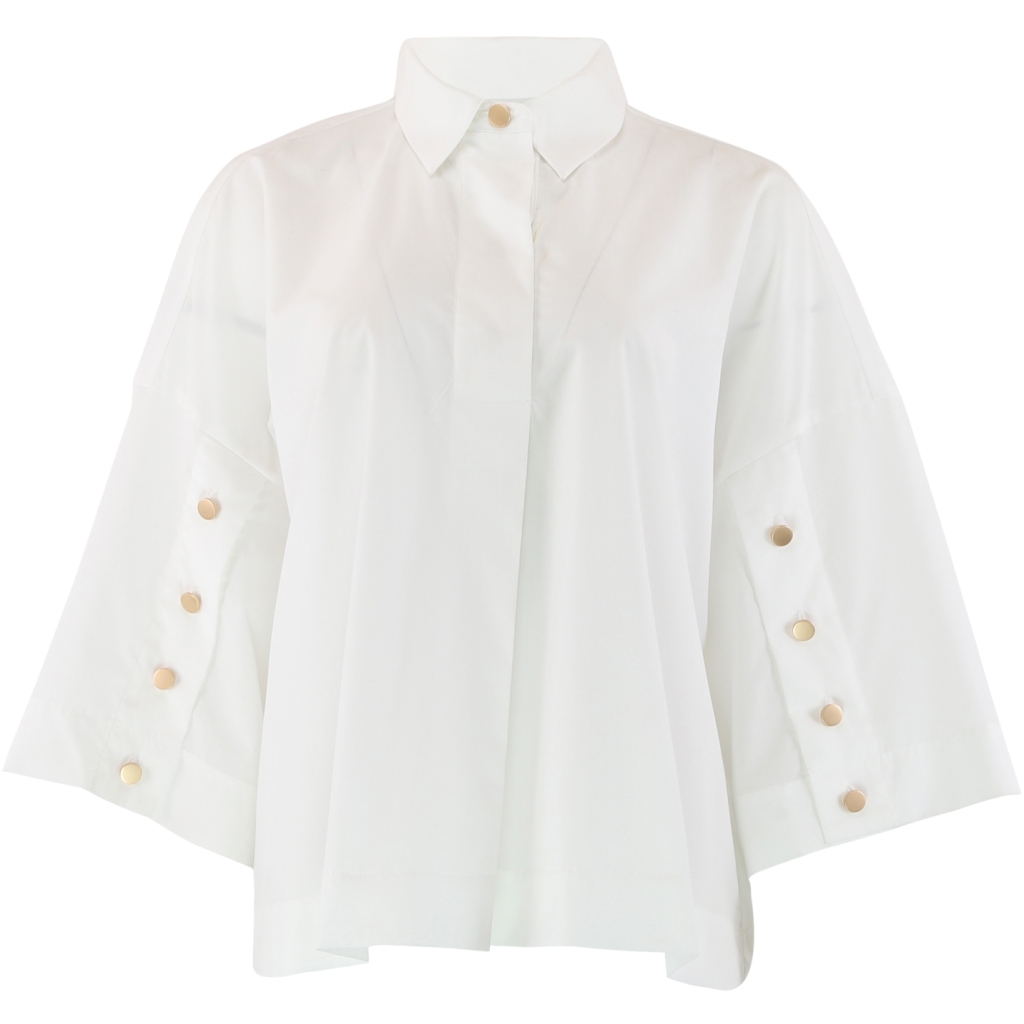 Stilig oversizet skjorte med 3/4-dels lange ermer, med gullknapper som detaljer. Romslig passform.