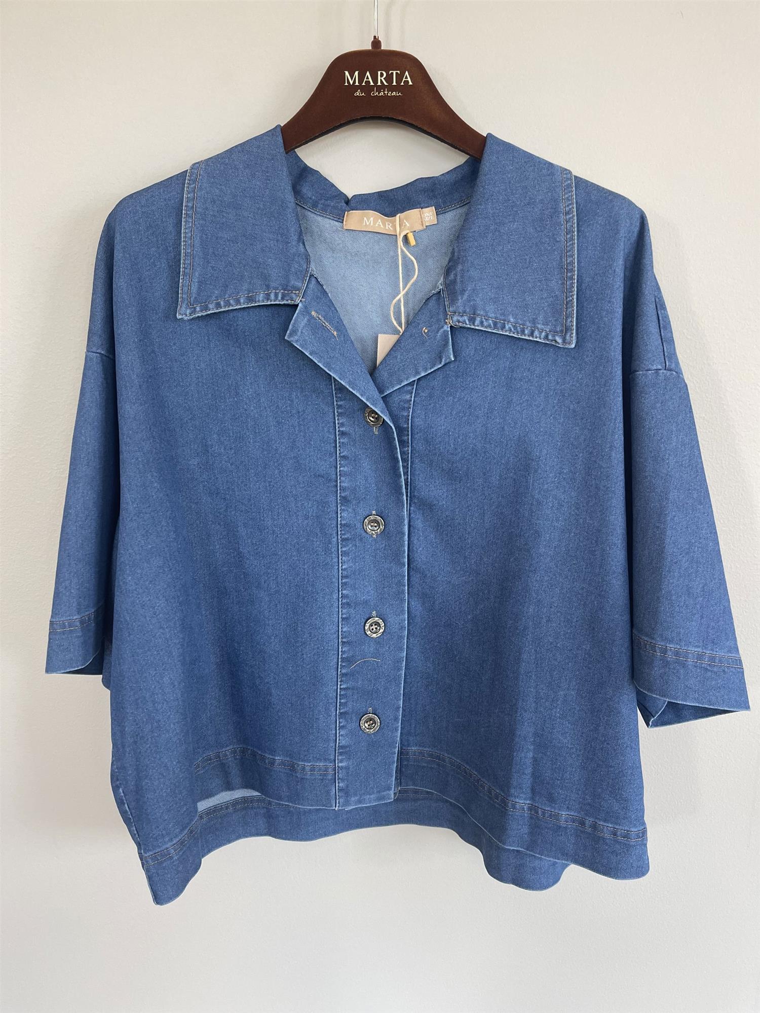 Lett denimjakke / skjorte i medium blå vask med klassisk snitt som er enkel å style til hverdags. One size.