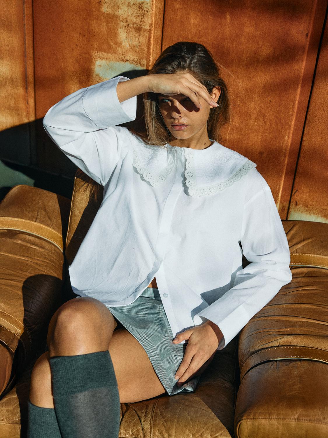 Eliza bluse med blondekrage