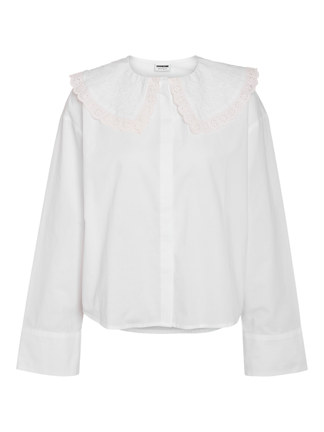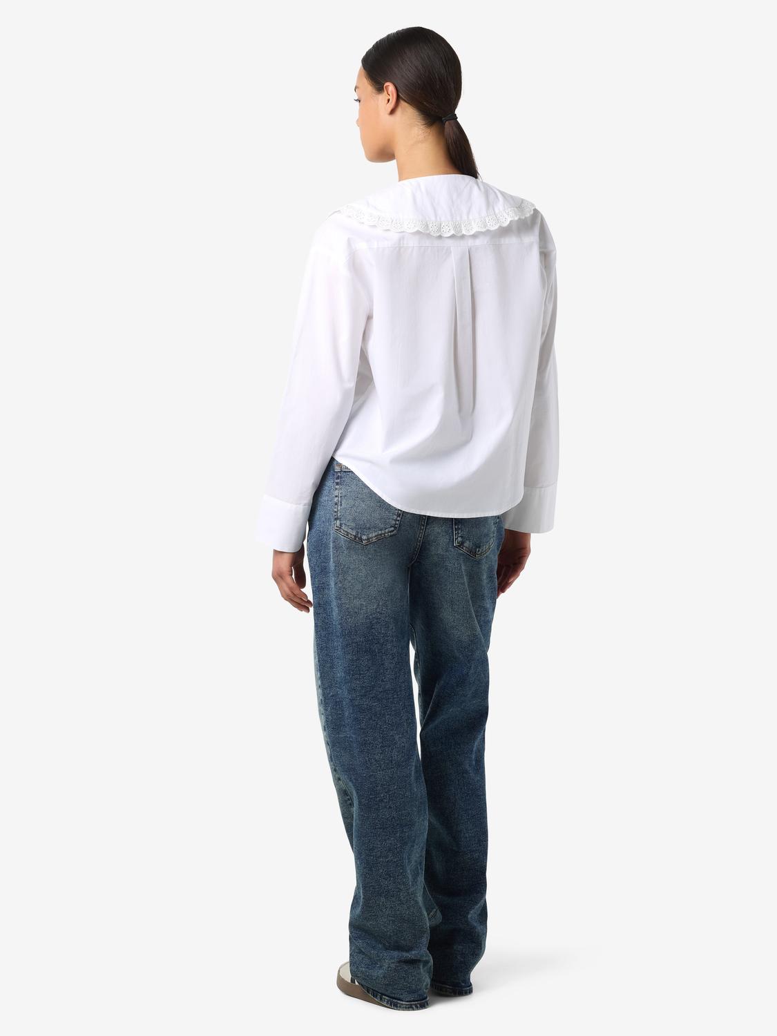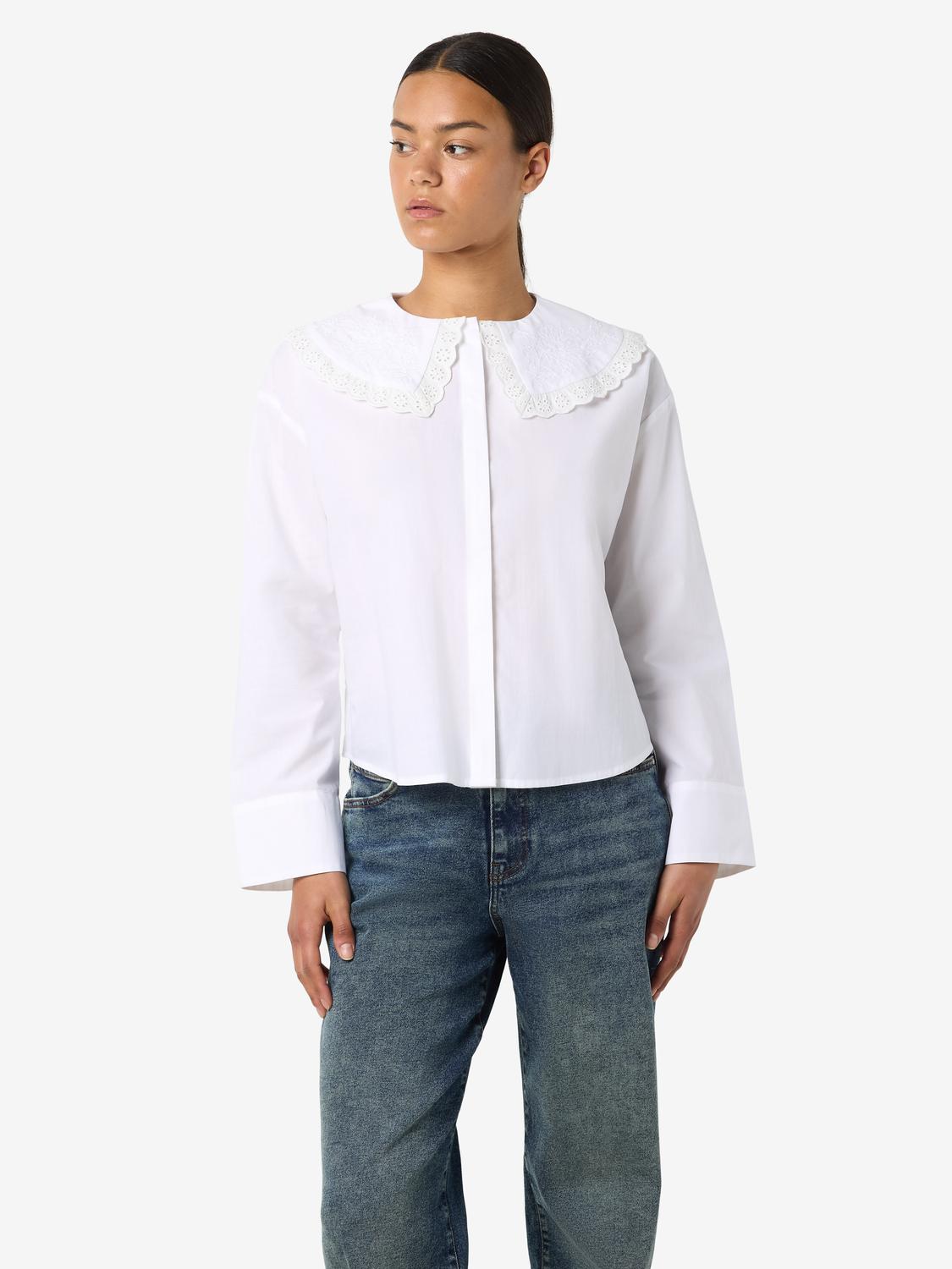 NMELIZA L/S EMBR COLLAR SKJORTE er en stilren og komfortabel skjorte laget av 100% bomull. Den lyse hvite fargen gir et friskt og elegant preg, perfekt for både hverdagsbruk og mer formelle anledninger.
