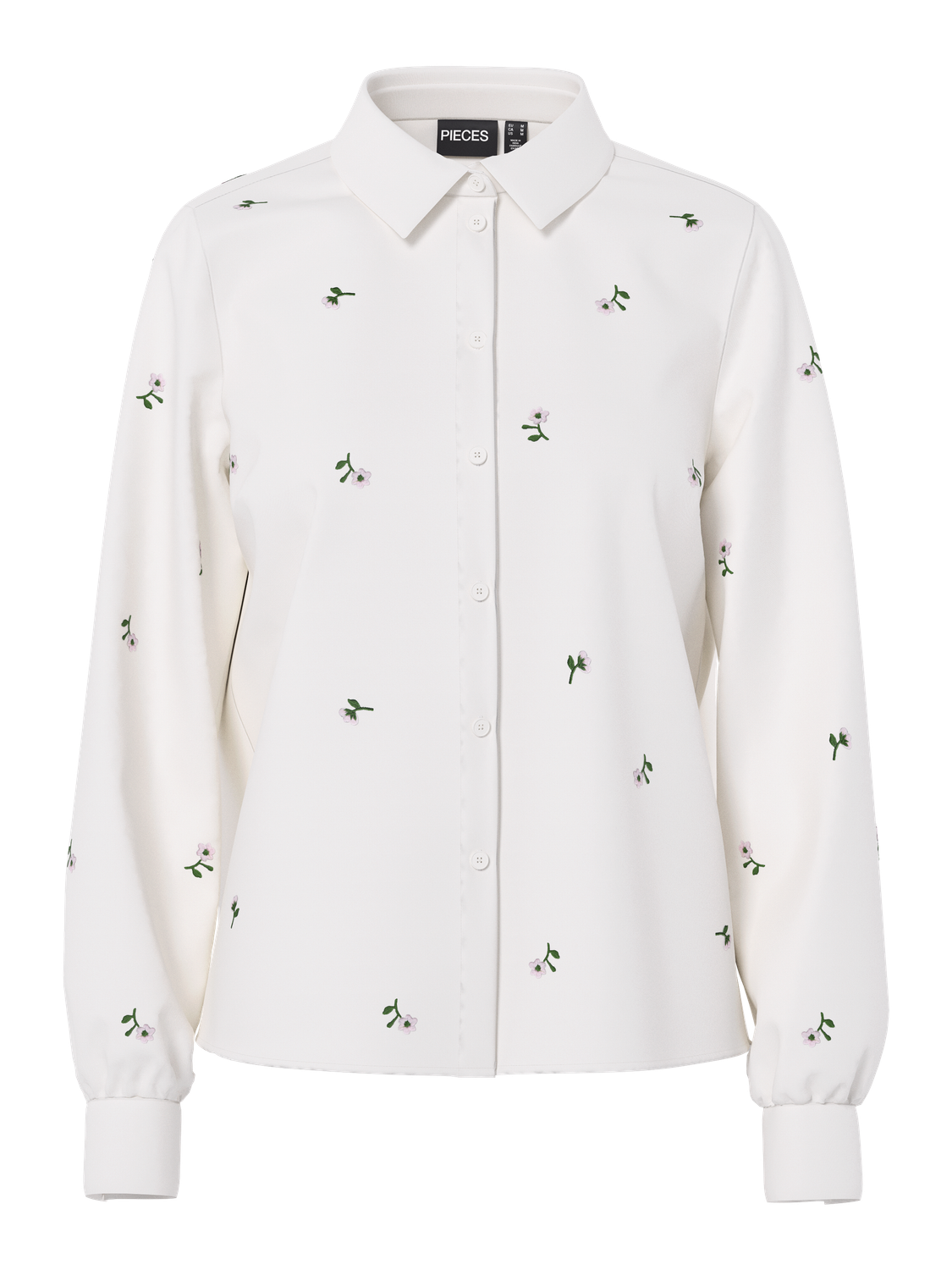 PCGENEVA LS SHIRT WVN BC er en stilren skjorte laget av 100% økologisk bomull, perfekt for en avslappet og komfortabel look. Med lange ermer og elastiske mansjetter gir denne skjorten en behagelig passform. Det gjentatte printet over hele overflaten tilfører et unikt preg til designet. Med broderte rosa blomster.