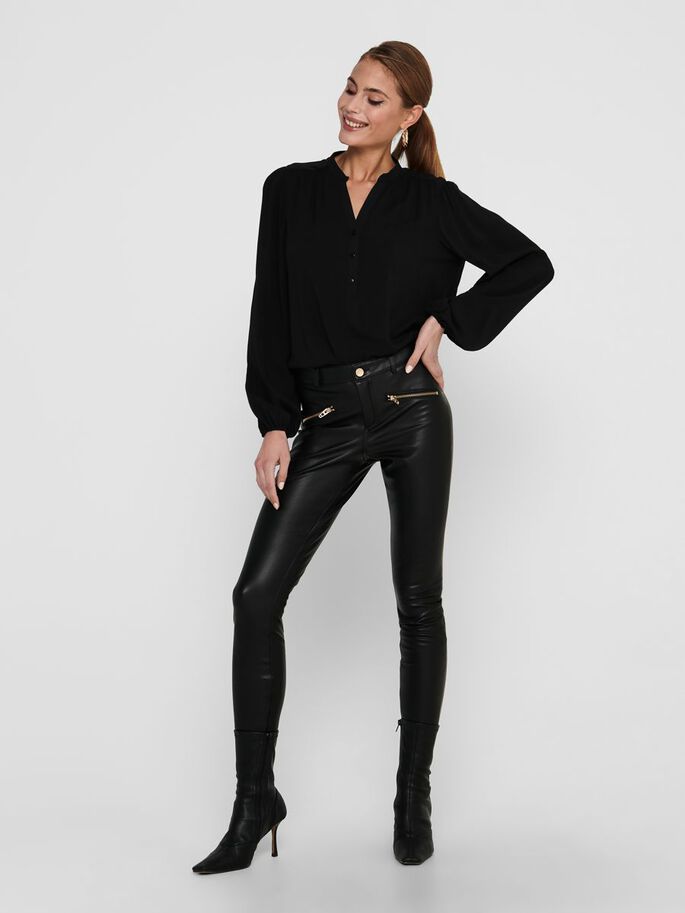 Sort klassisk bluse med v-hals.