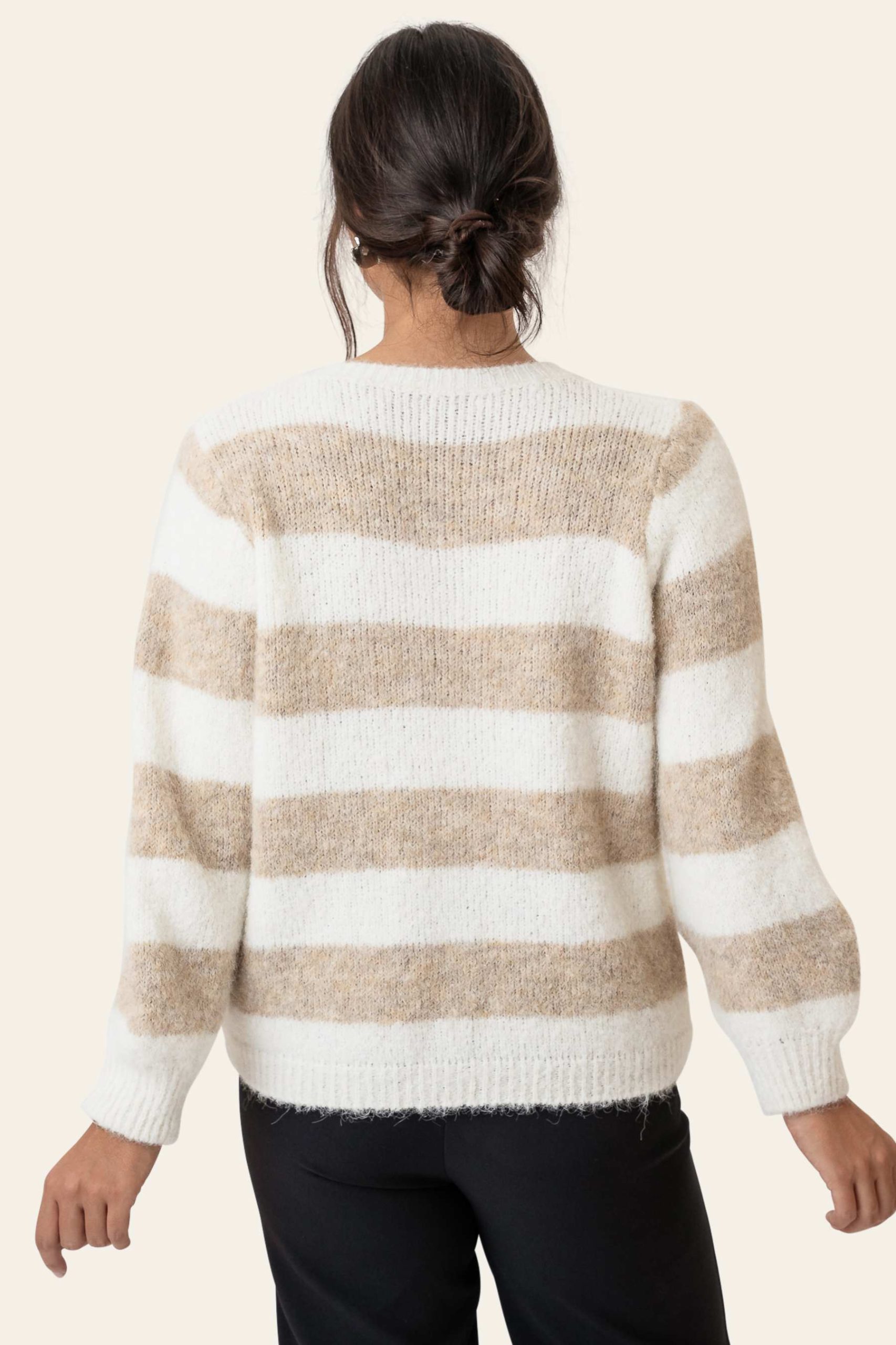 Idun cardigan beige/hvite striper, strikkejakke fra ByIc.