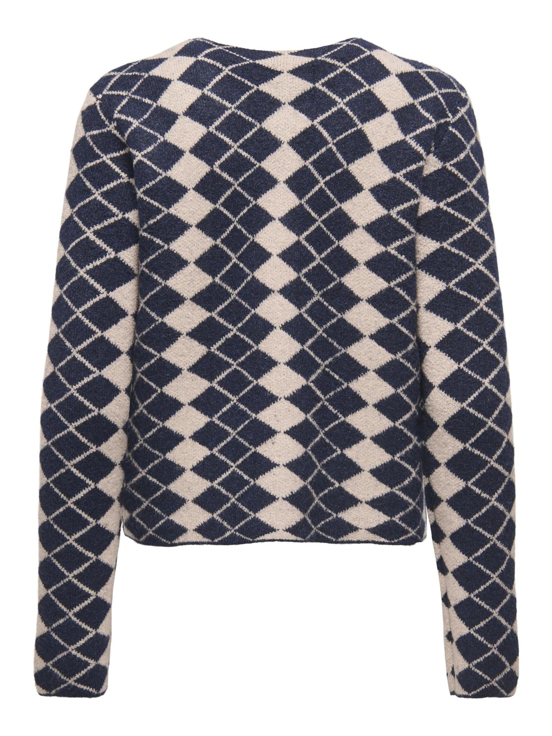 Marineblå rutete cardigan.