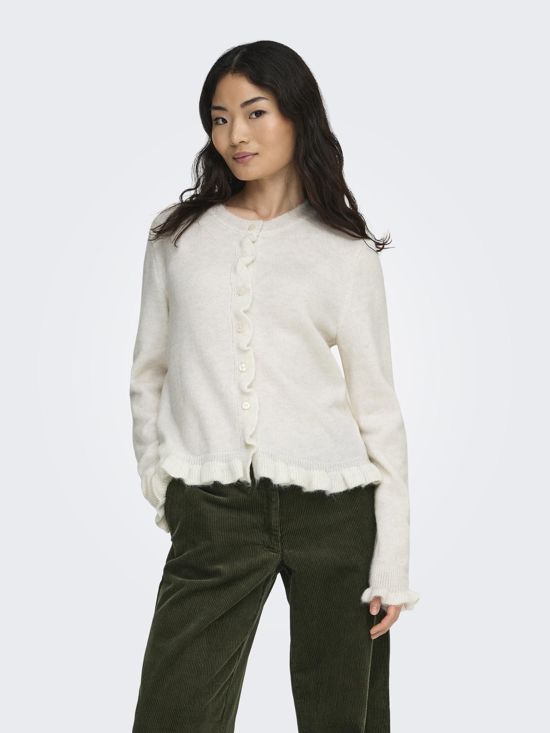 Denne cardiganen er perfekt for å tilføre et elegant preg til din garderobe, og den er laget med fokus på både komfort og stil. Med lange ermer og rysjedetaljer gir den et feminint uttrykk som passer til ulike anledninger.