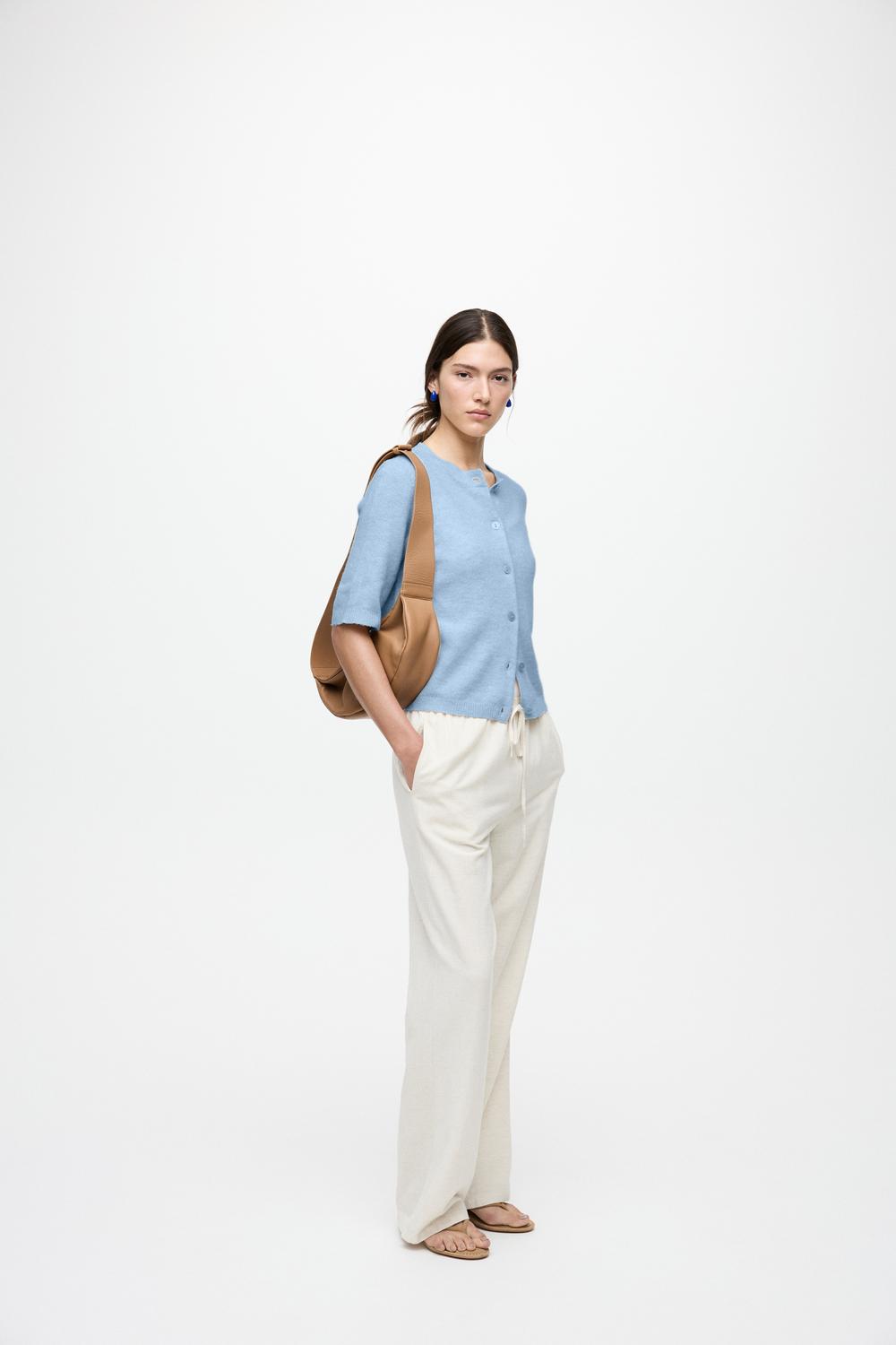 VILIGA 2/4 O-NECK KNIT CARDIGAN. Stilren og komfortabel cardigan perfekt for hverdagsbruk. Laget av resirkulert polyester, gir denne cardiganen både stil og bærekraft.