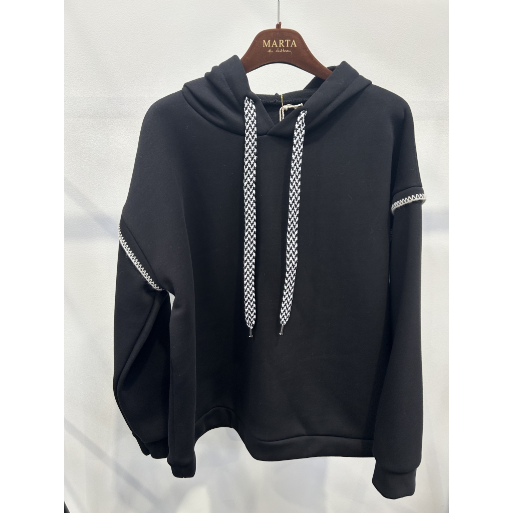 Audrey svart hettgenser med hvite sømmer i kantene.