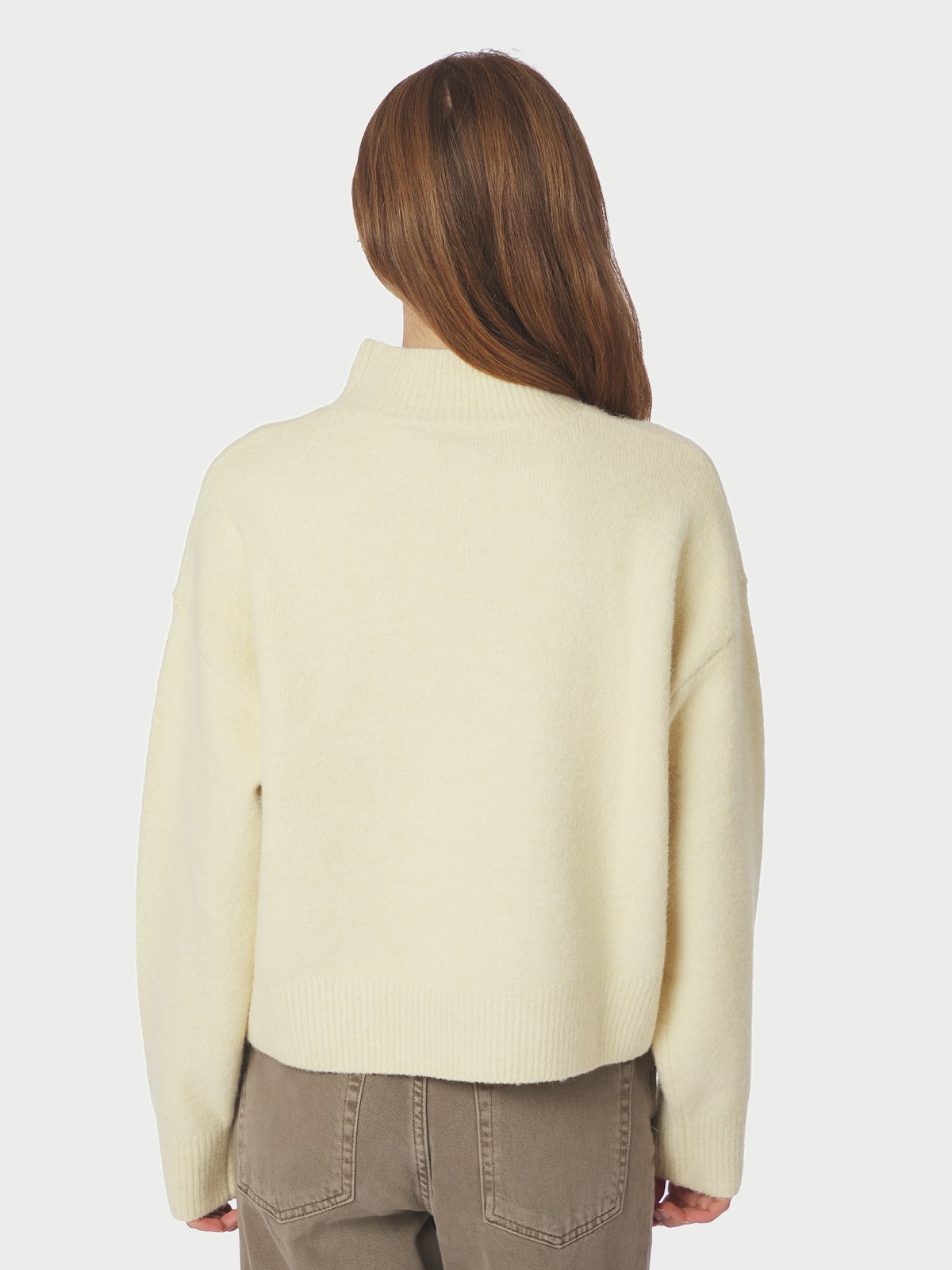 Deilig strikkegenser i et fluffy materiale med høy krage og løs passform. Vårens nyhet – sommerstrikk!