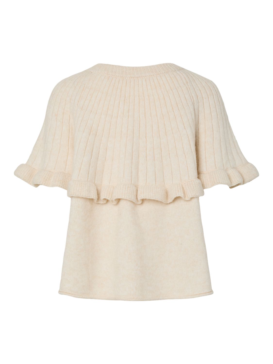 Genser med kort ermer og fin volanger. Løs og ledig passform.