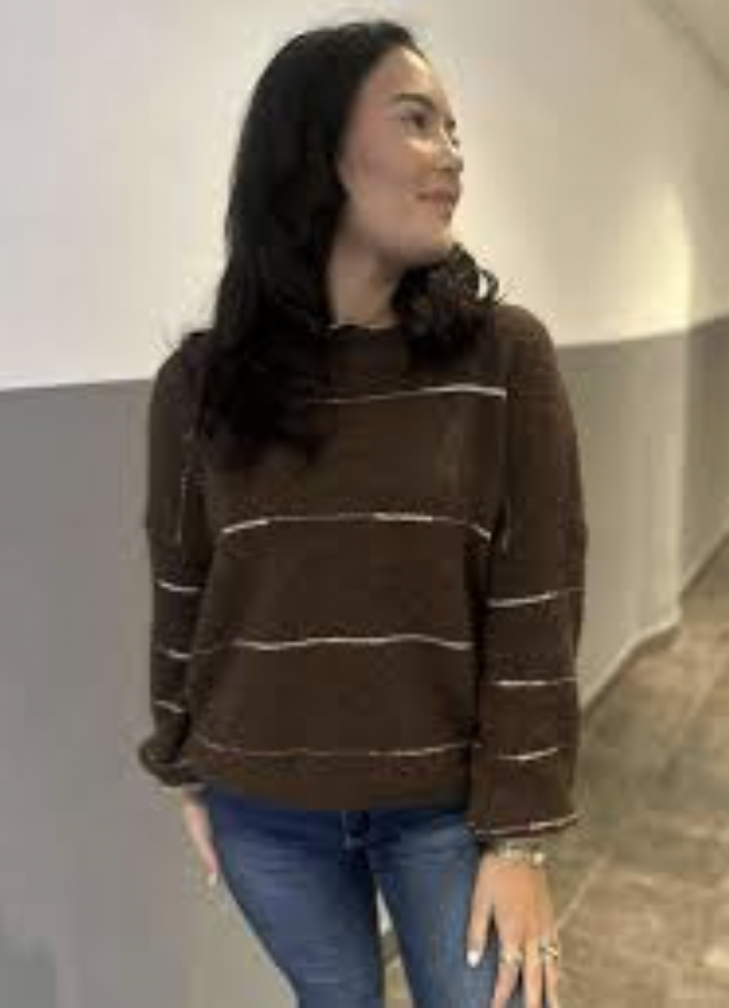 Strikkegenser med gulldetaljer. Myk og behagelig kvalitet. One size.