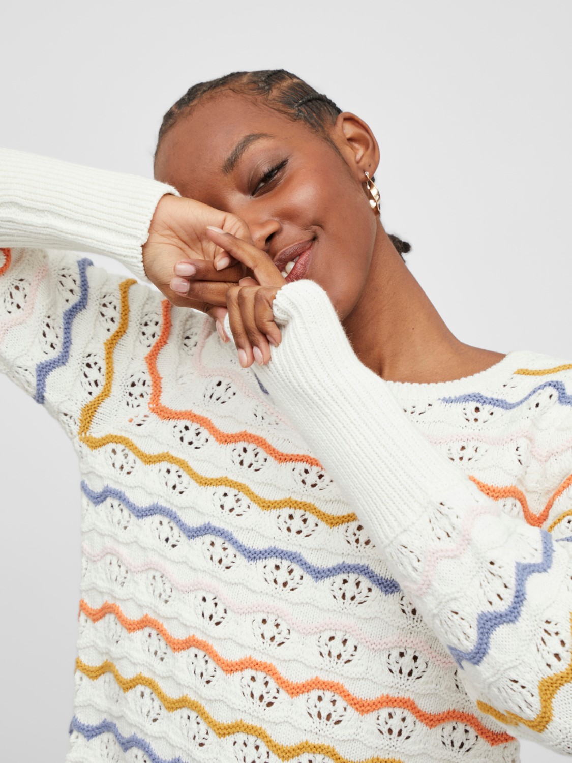 Vila genser Vialexia, hvit genser med fine detaljer og farger.