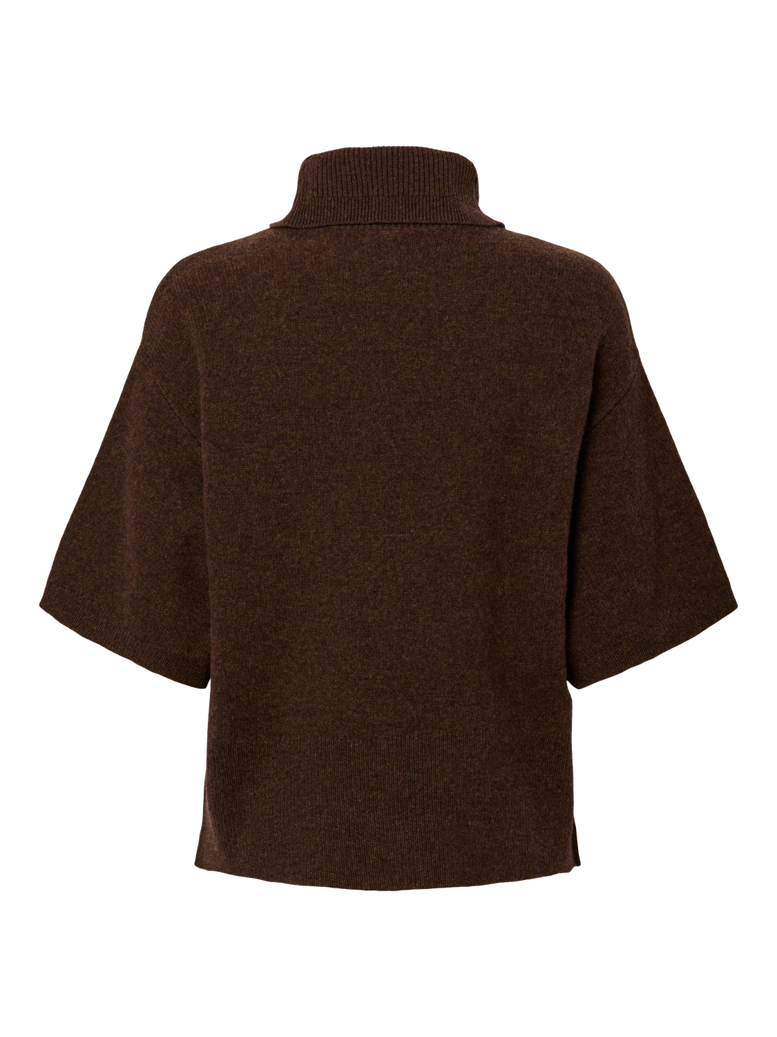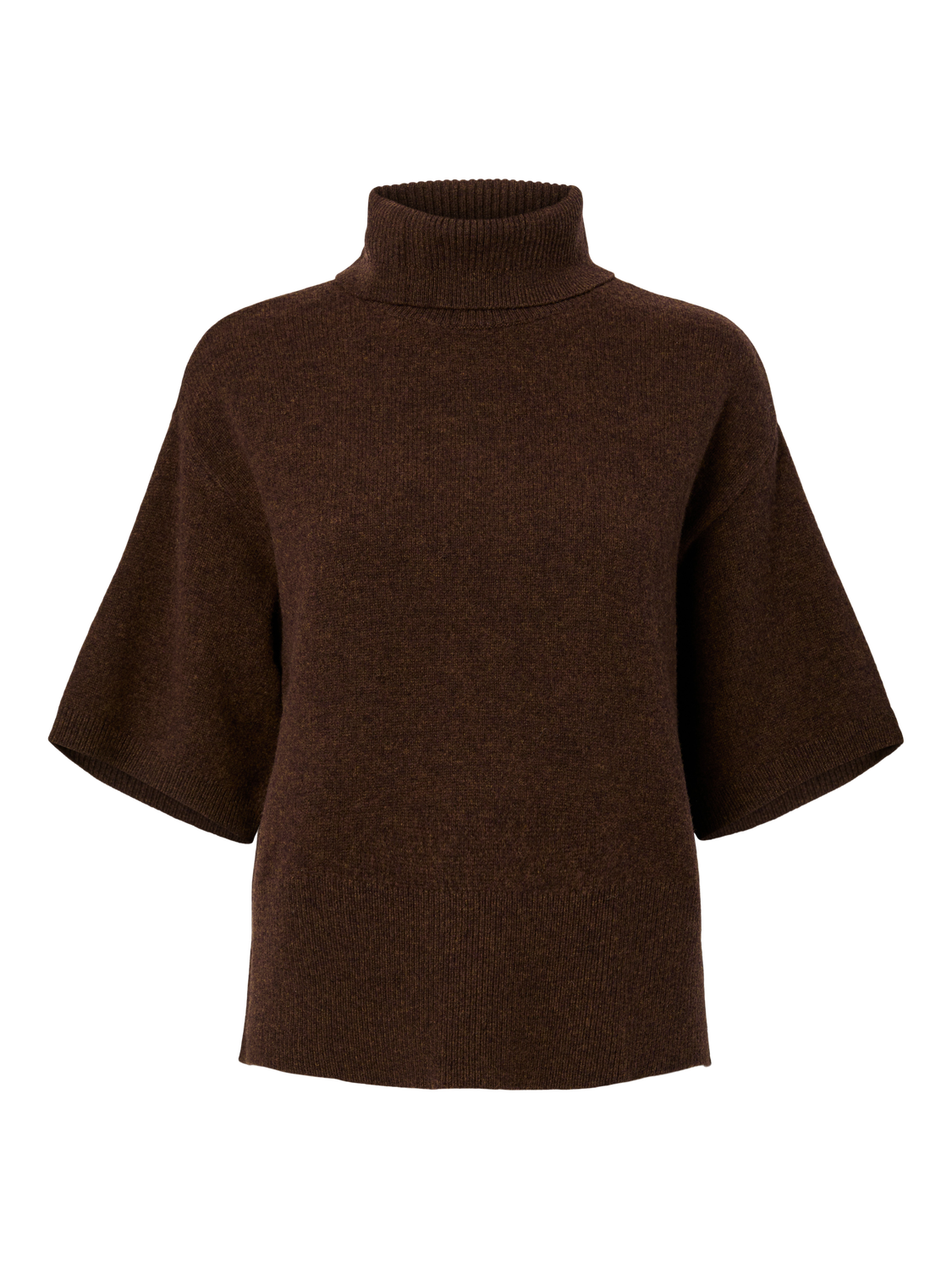 Nydelig strikket genser i brunmelert farge. 7/8-dels lange ermer og i 100% ull.
