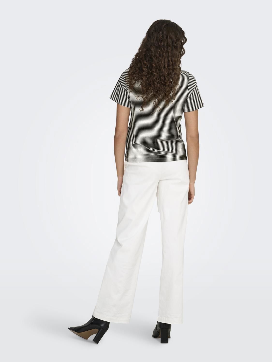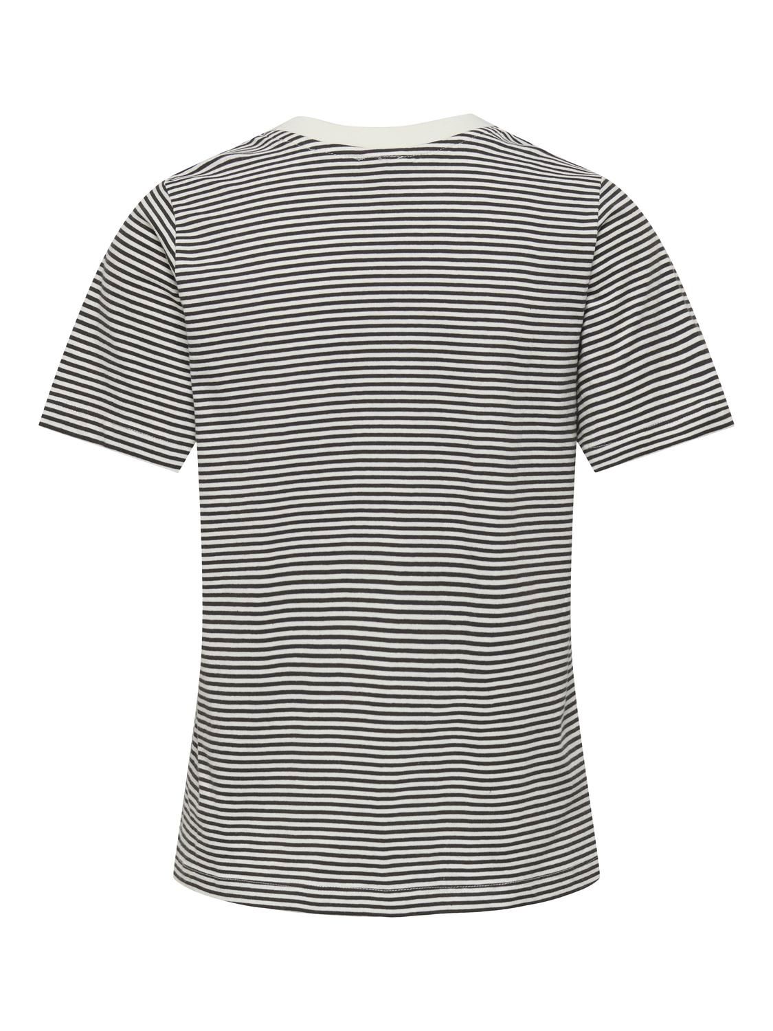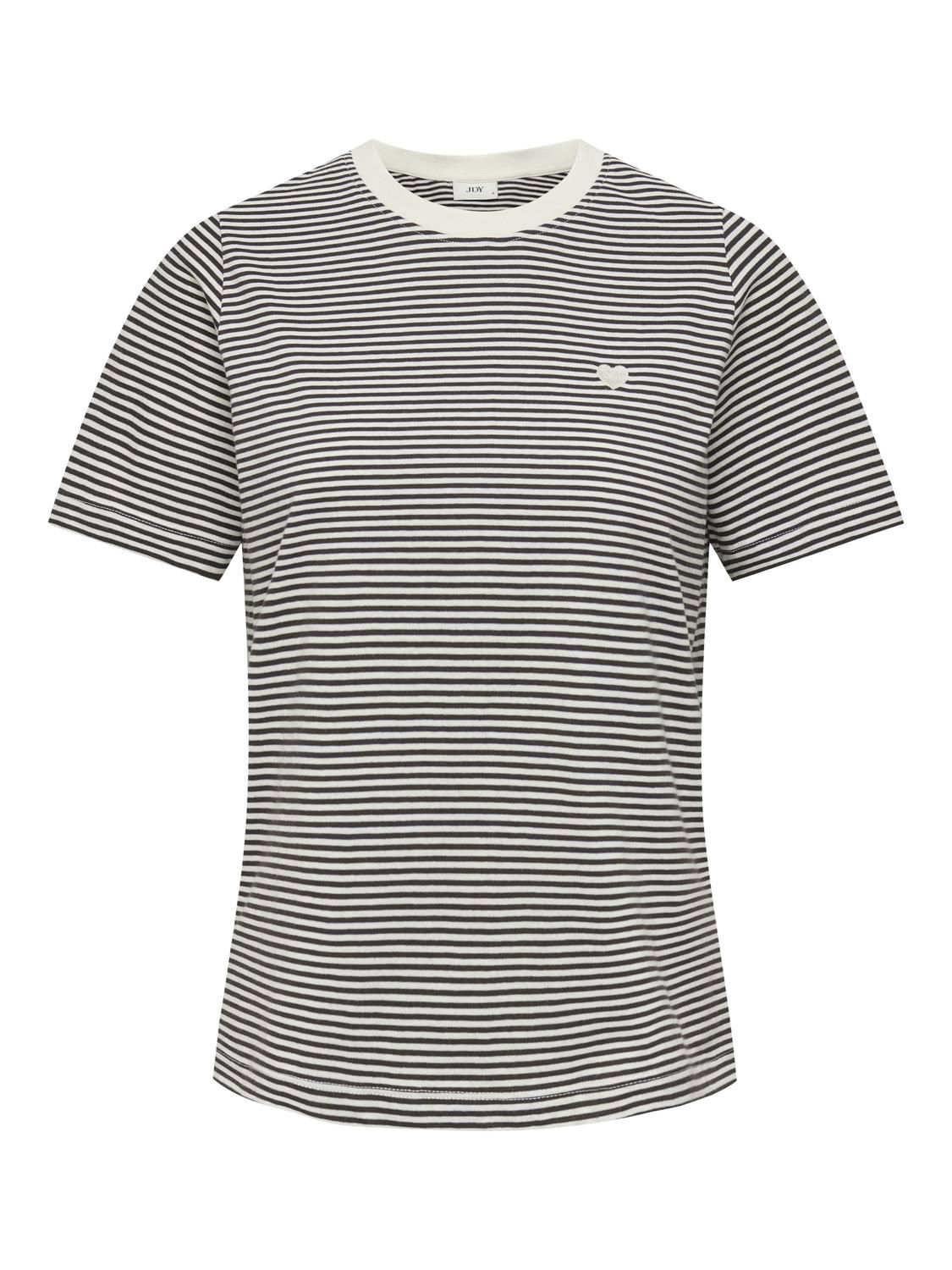 T-skjorte med mørke brune striper og et brodert lite hjerte.