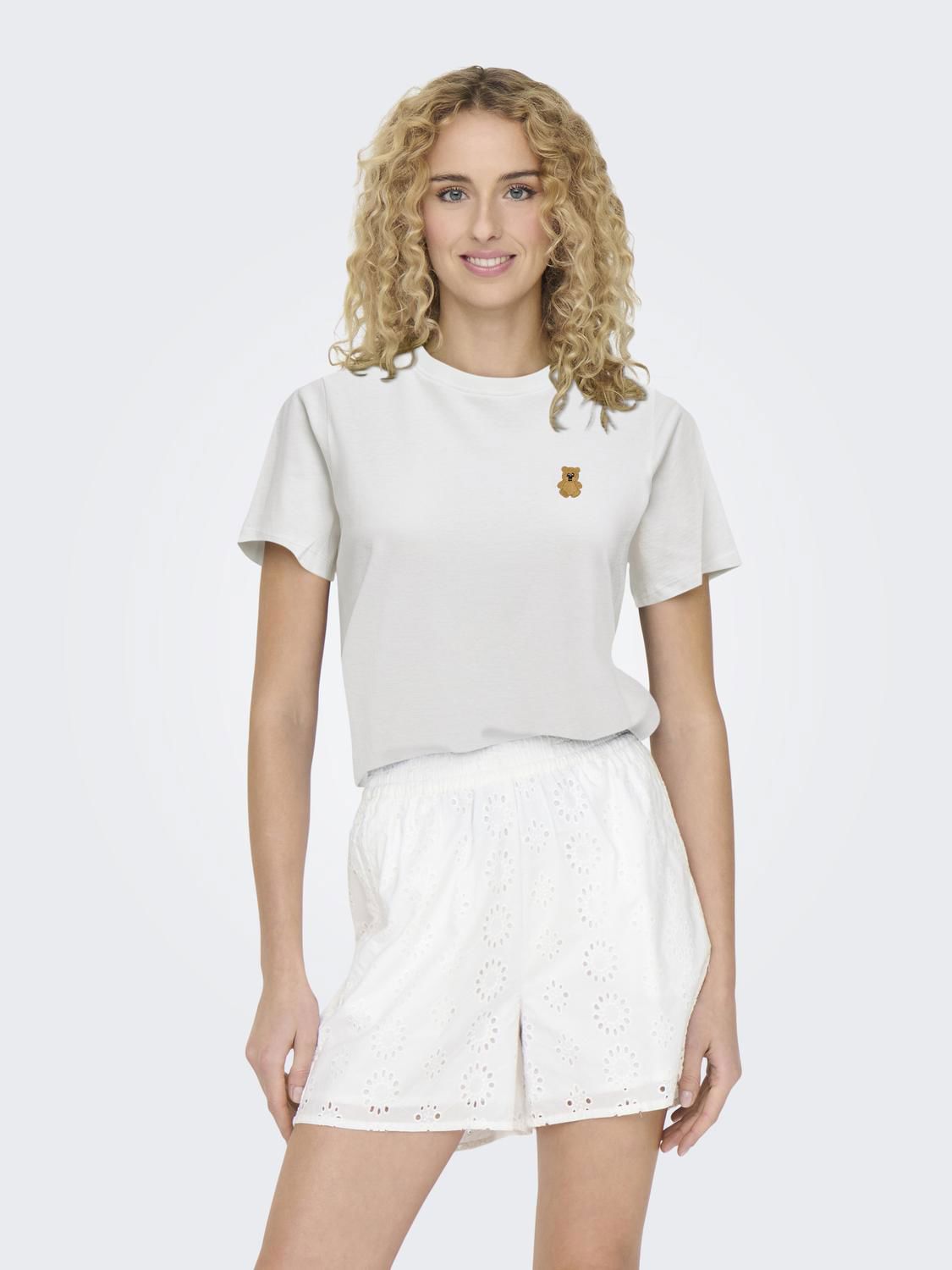 T-skjorte i 100% bomull, med brodert teddybjørn!