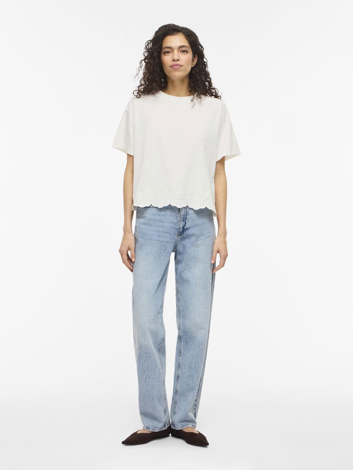 T-skjorte med brodet kant nederst.