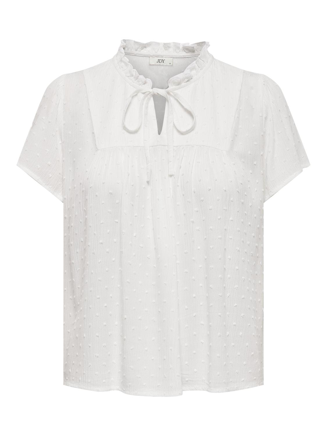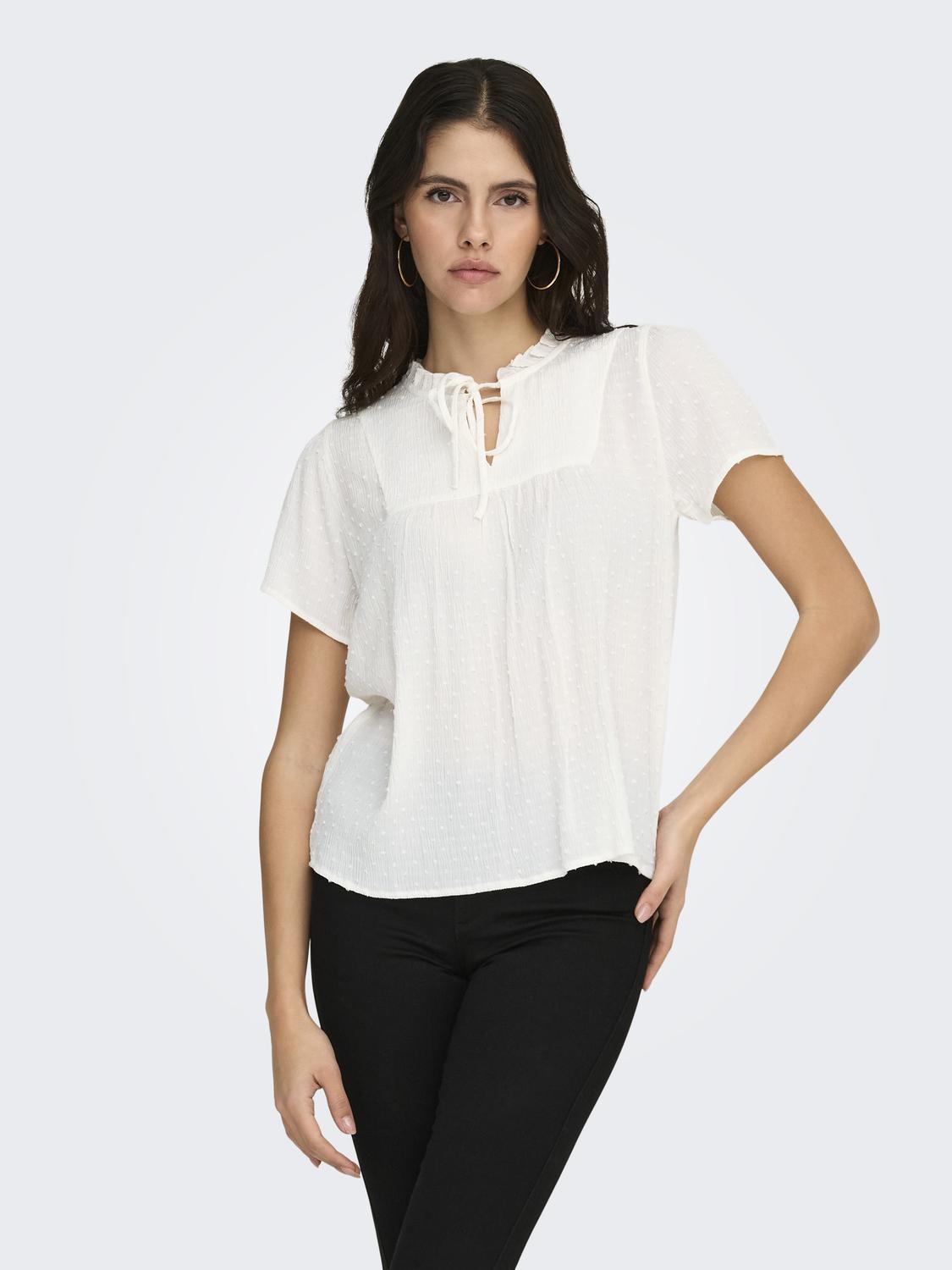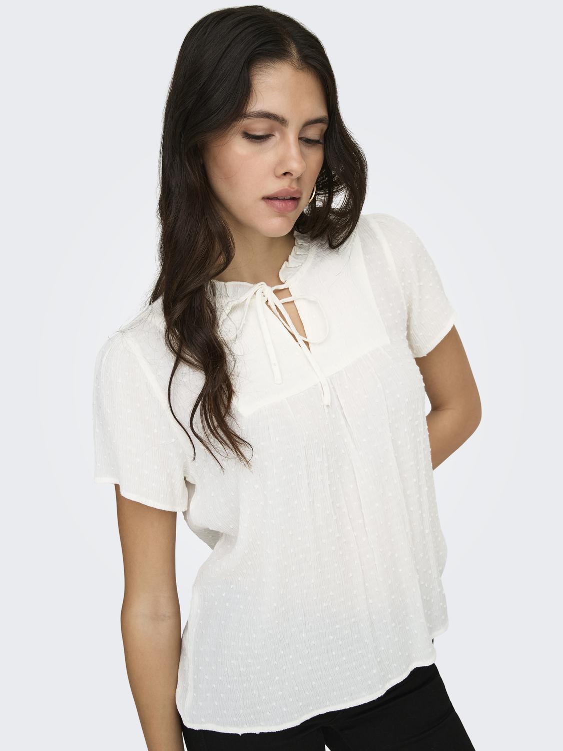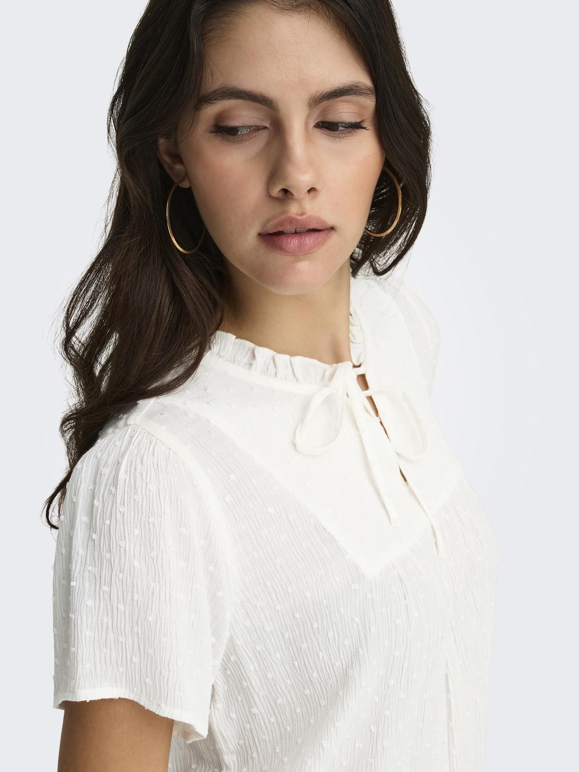 Feminin topp i 100% viskose, et mykt og lett materiale som gir en elegant og silkeaktig følelse. Den har en V-hals, volumermer og en sløyfedetalj som tilfører en ekstra touch av stil.