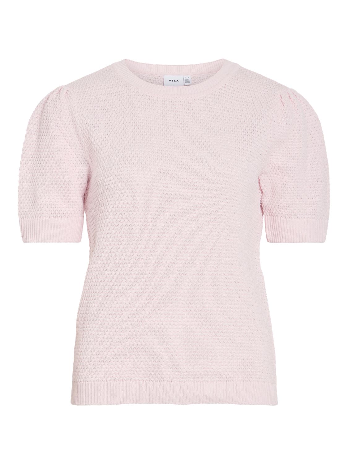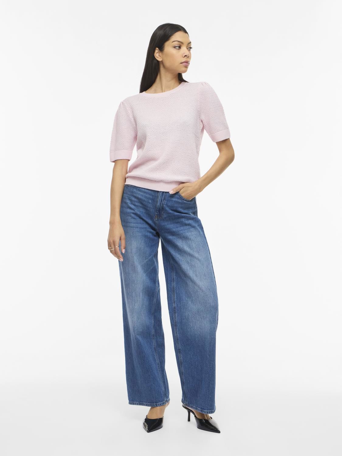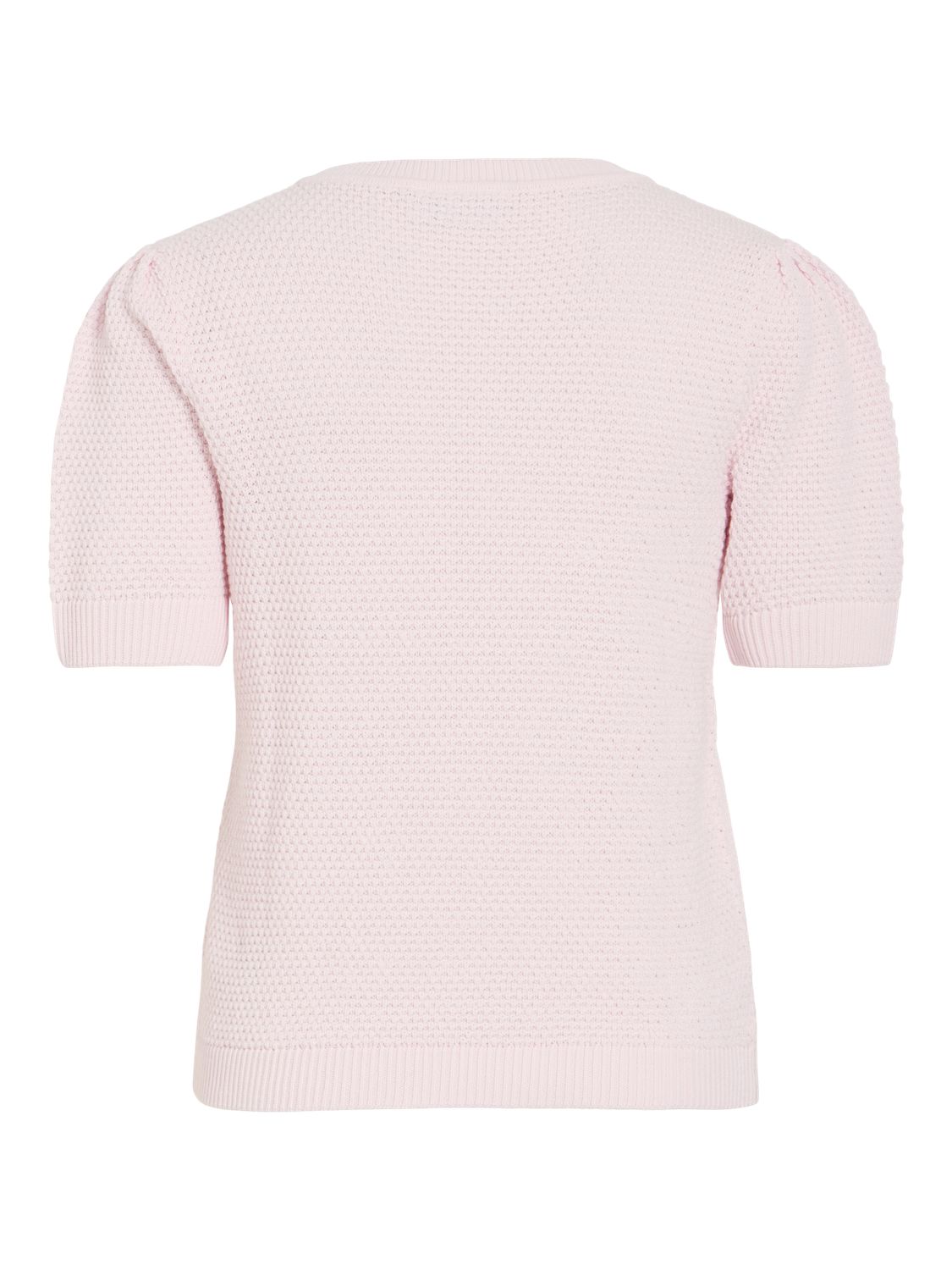 Topp i perlesstrikk. Rund hals og korte ermer.