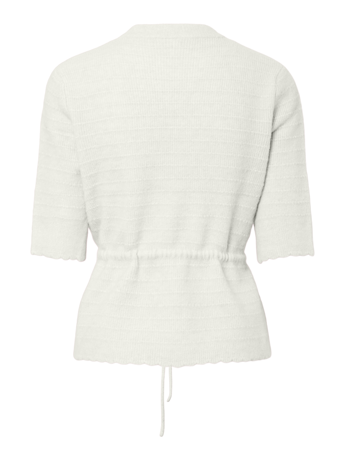 Strikket topp/genser med korte ermer. Snøring i livet, fin struktur og flott kvalitet.