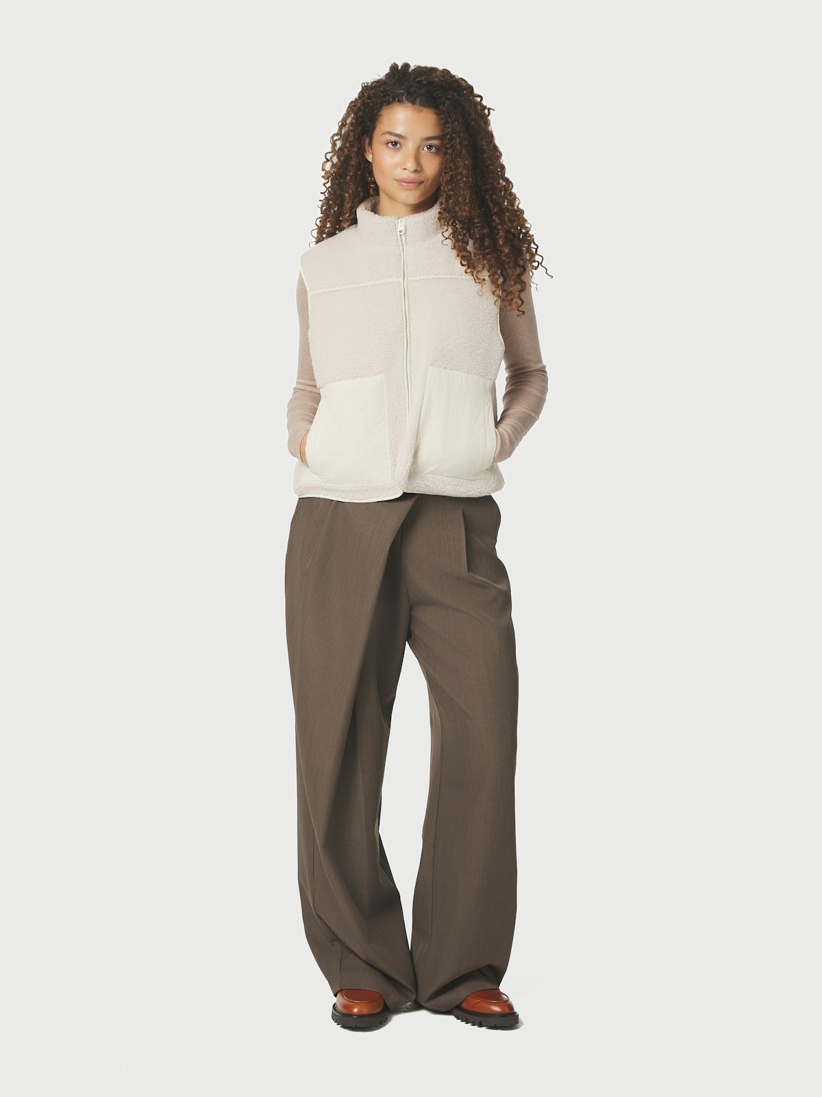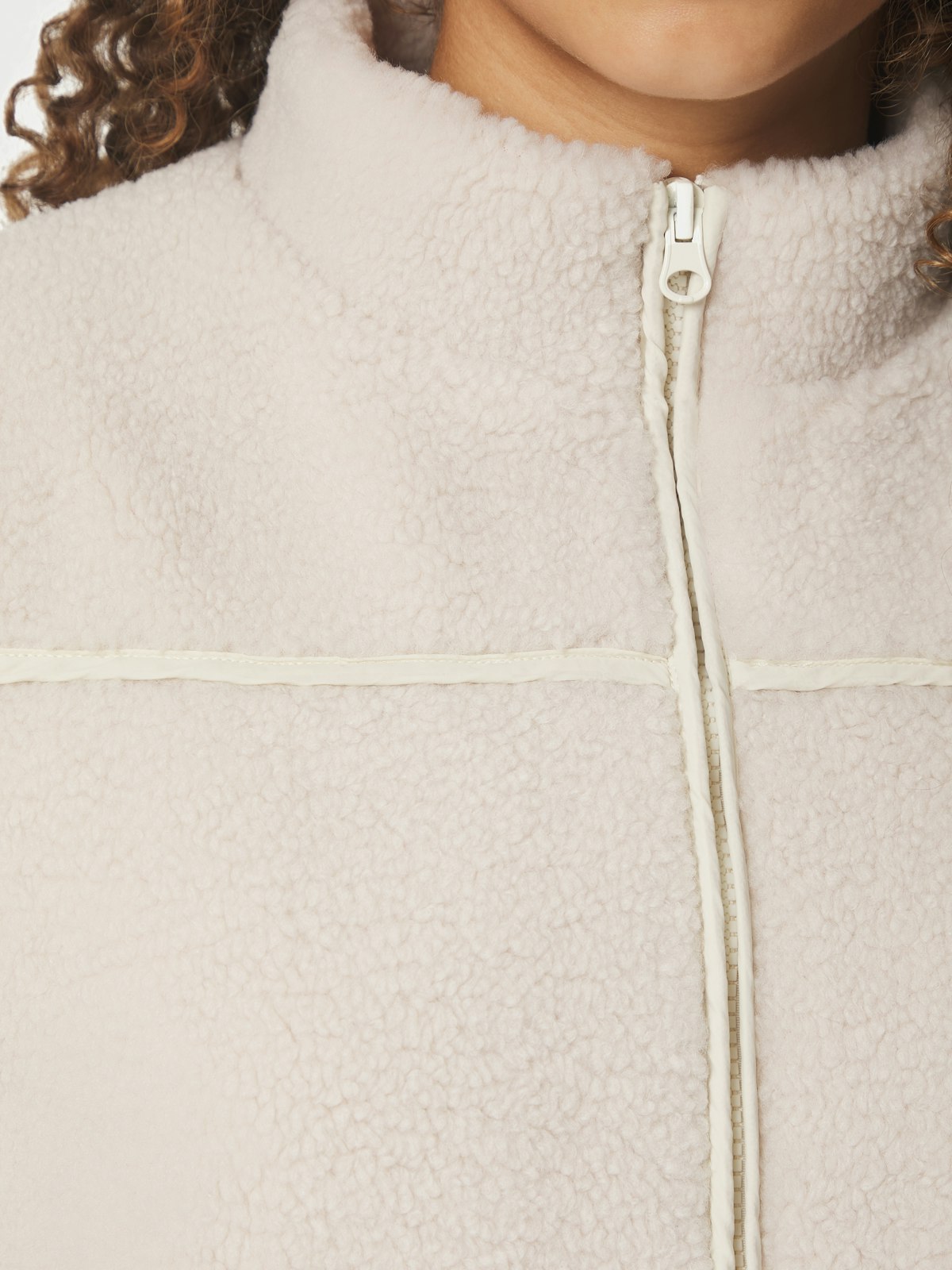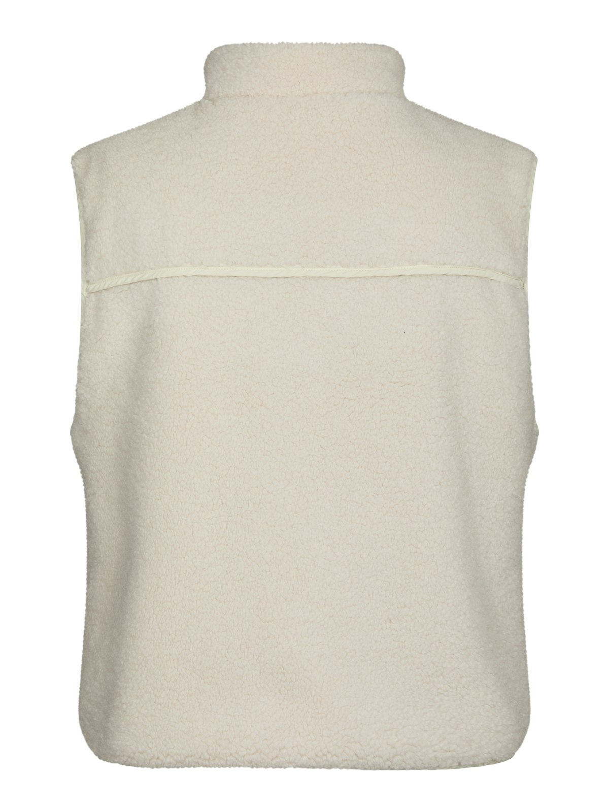 Off white teddy/fleece-vest fra Neo Noir. Vesten har glidelås, en kontrastlomme og liten krage.