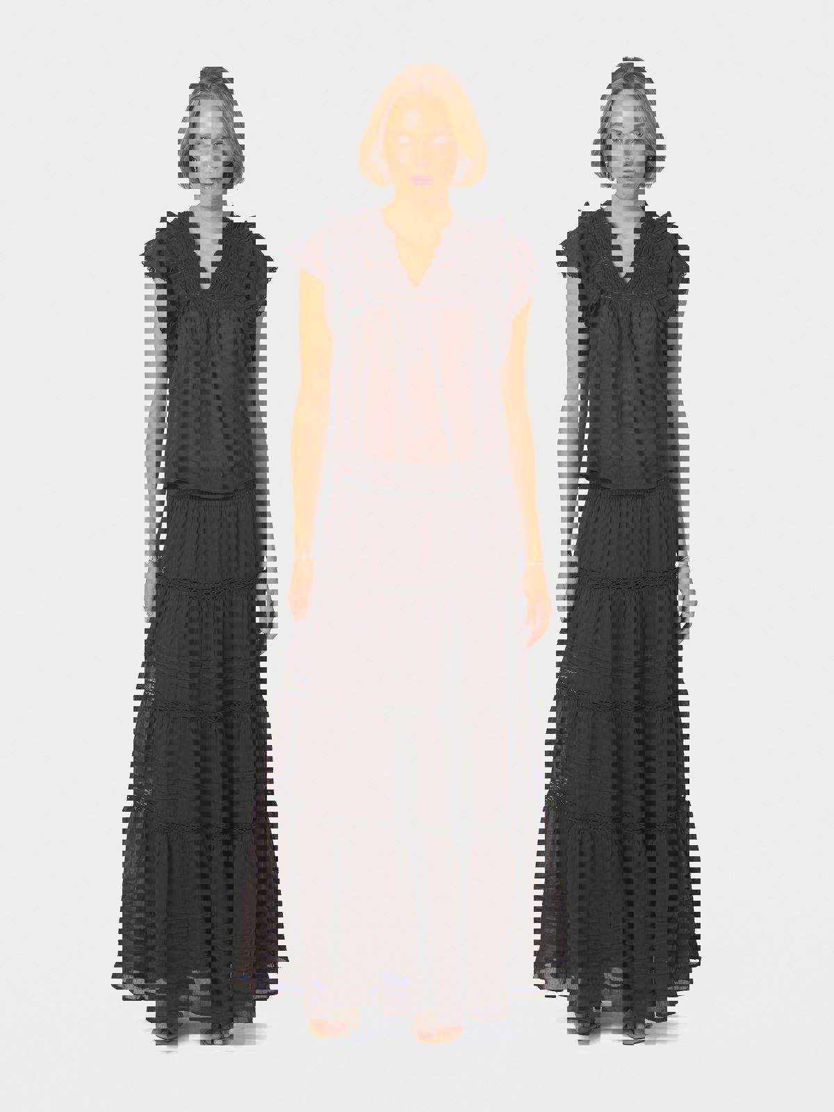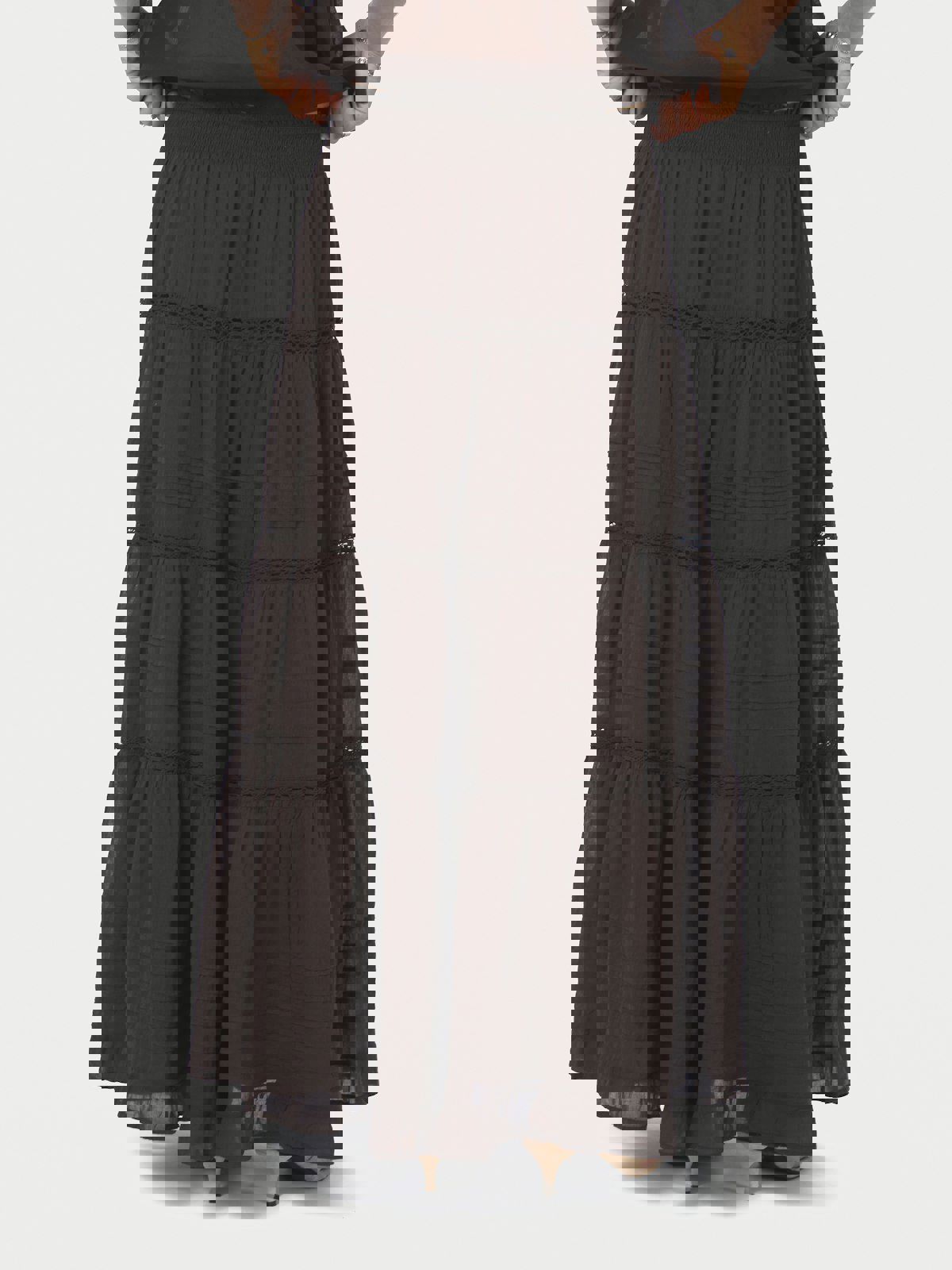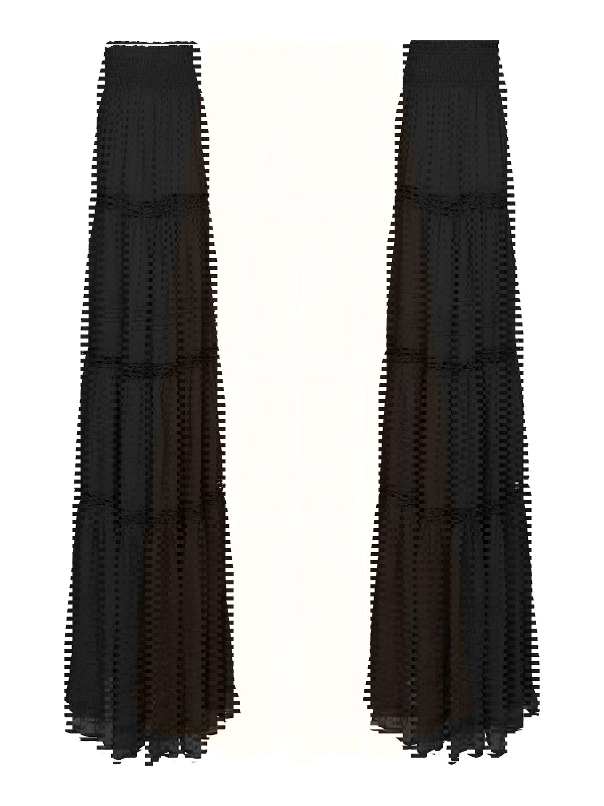 Maxiskjørt i bomull voile med bånddekor og strikket midje, foret med bomull. Perfekt for hverdagen så vel som ferien.