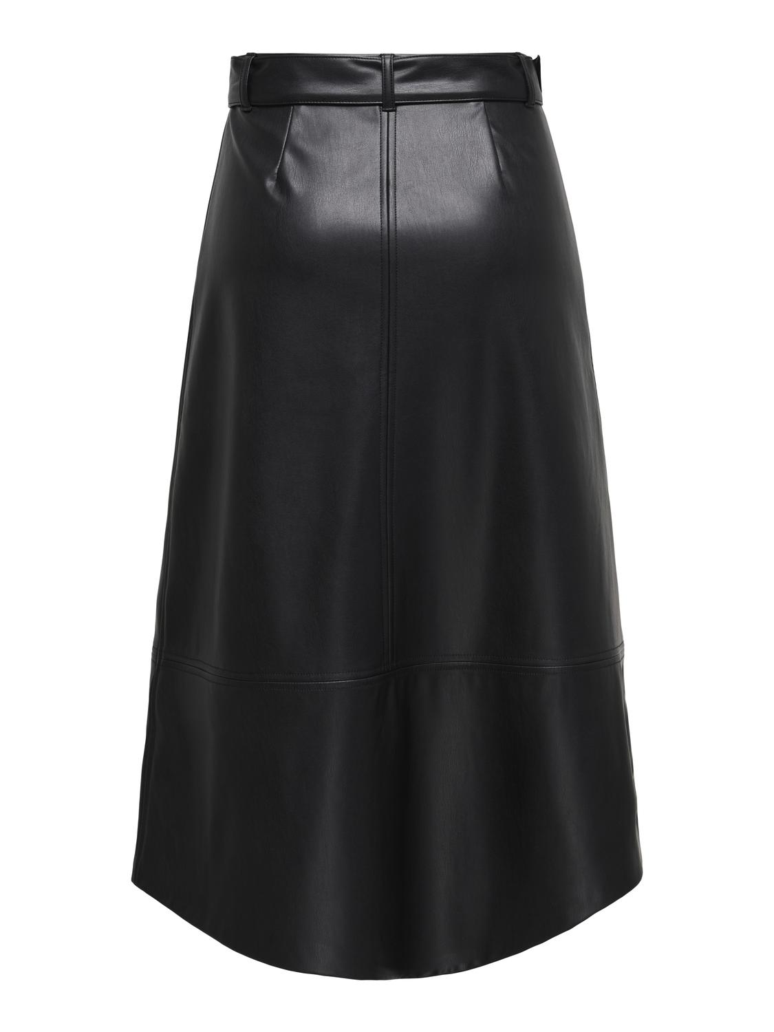 Midi skørt i imitert skinn. A-shape og med belte med gullspenne.