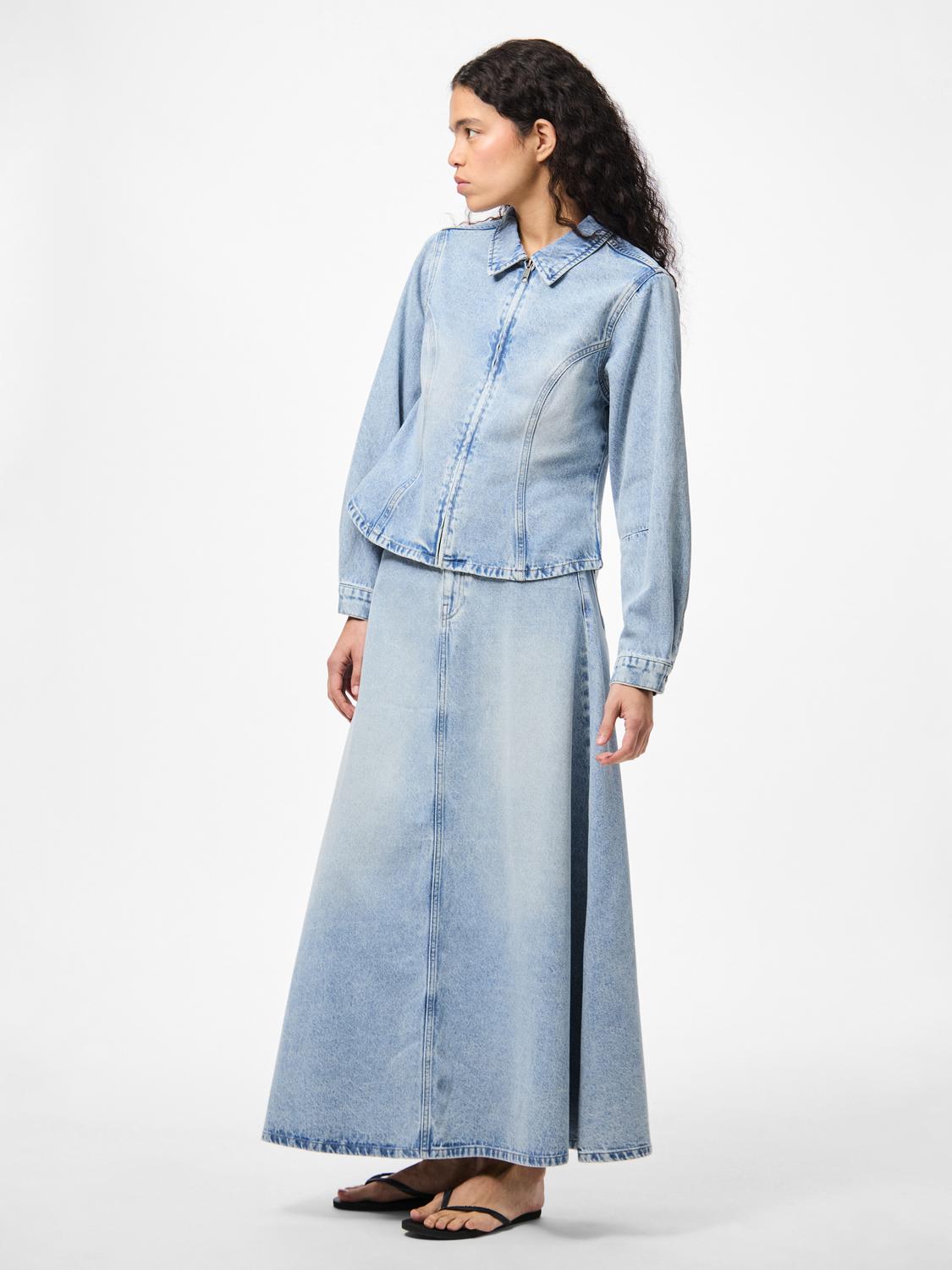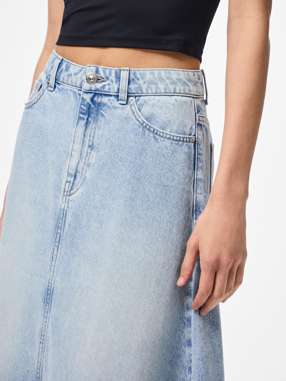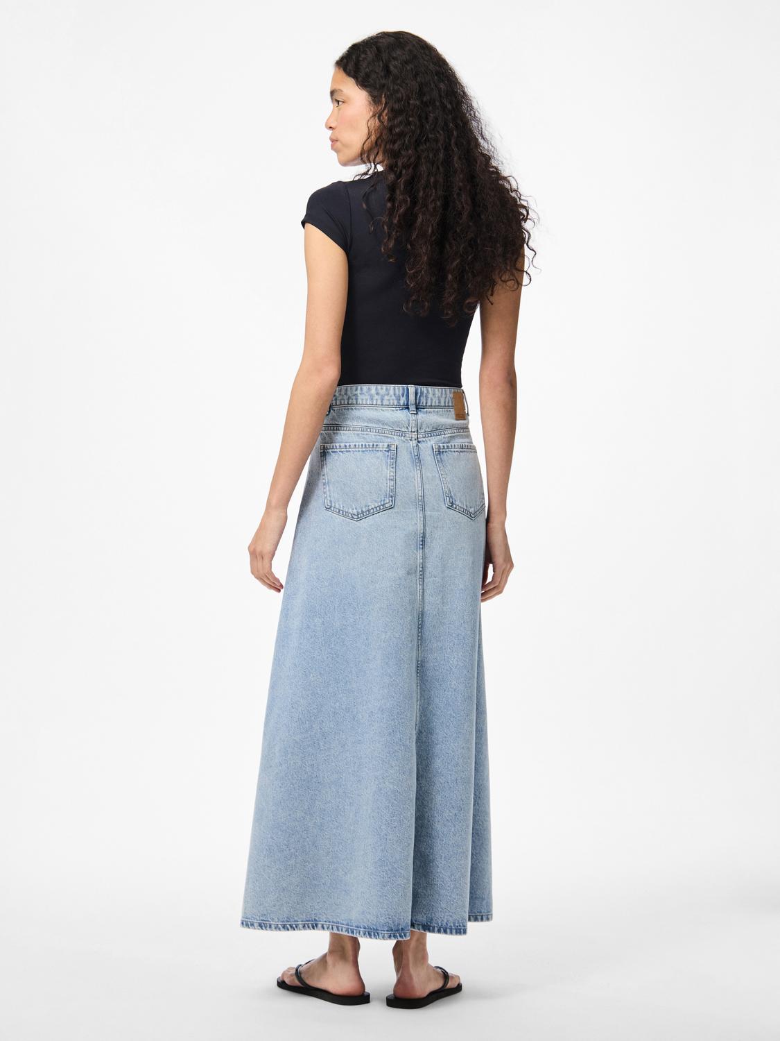 High waist langt denimskjørt. Lommer i siden og a-shape.