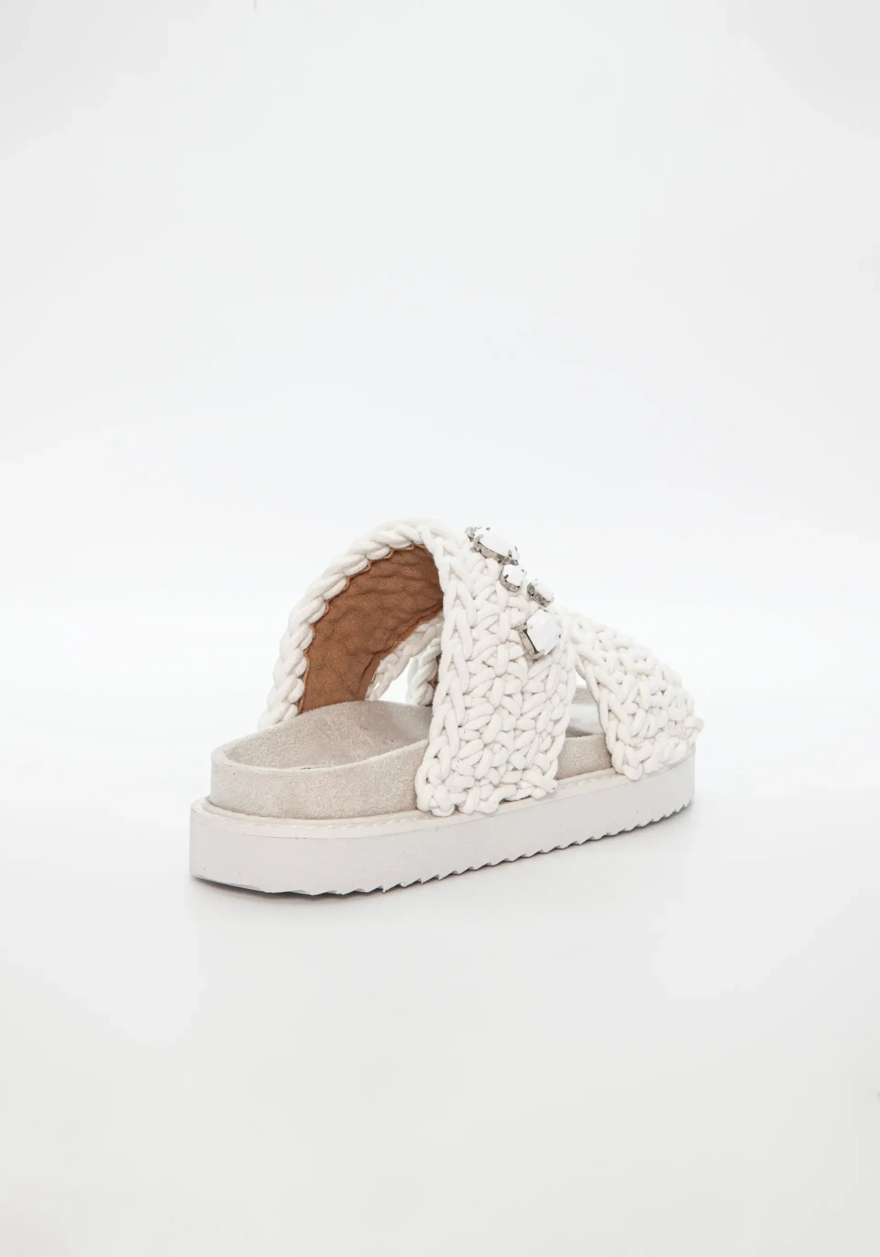 Off white sandal flettet med «bling!», fra Duffy.