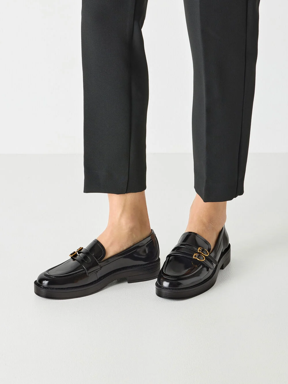 Sorte mokkasiner med spenner