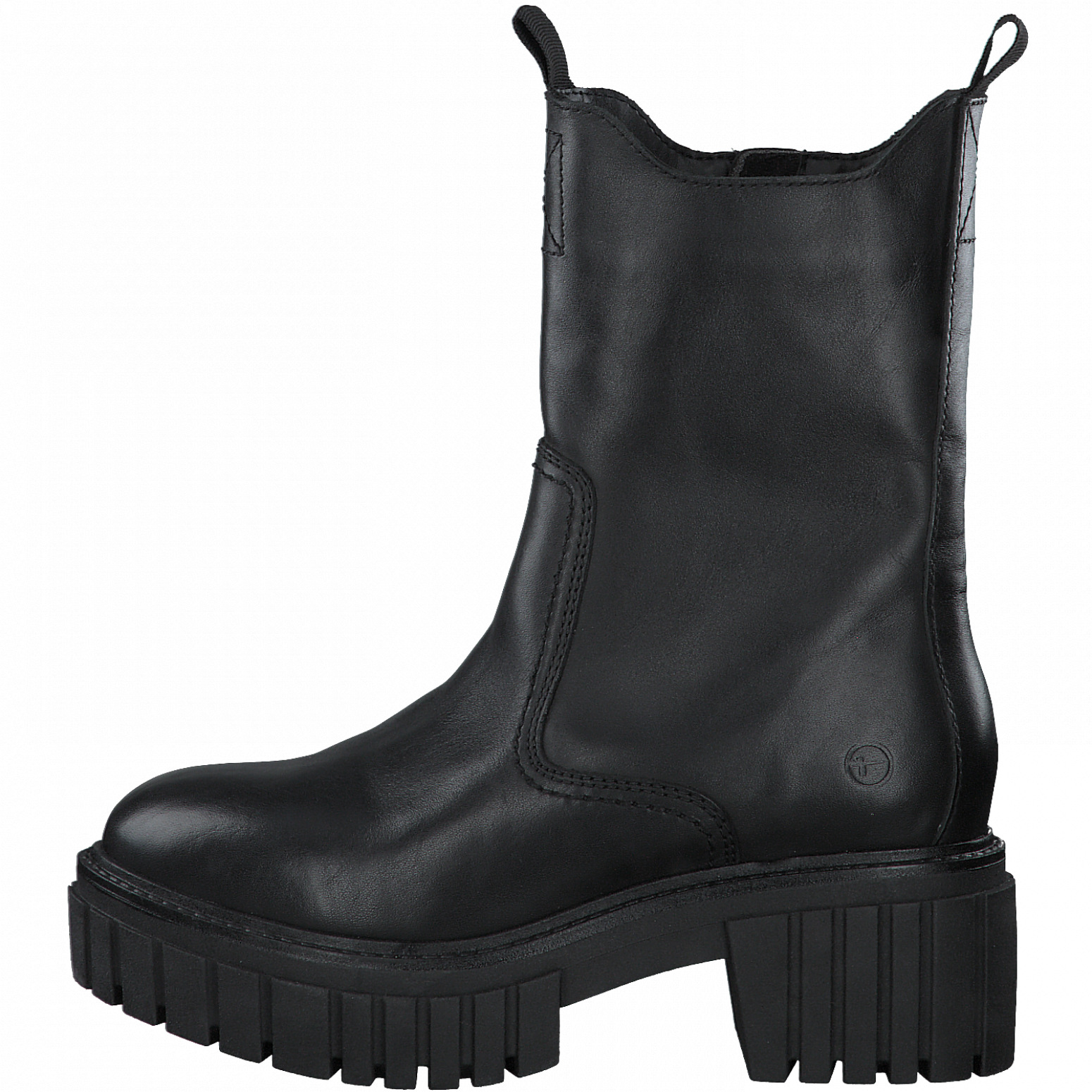 Tamaris boots skinn, sorte boots med grov og kraftig såle.