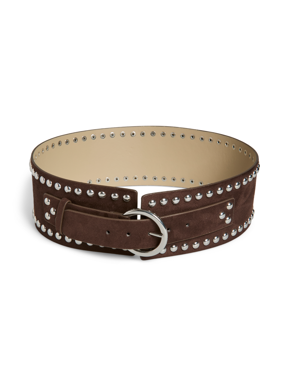 Brun bredt belte med studs! Stilig pyntebelte fra Vila.