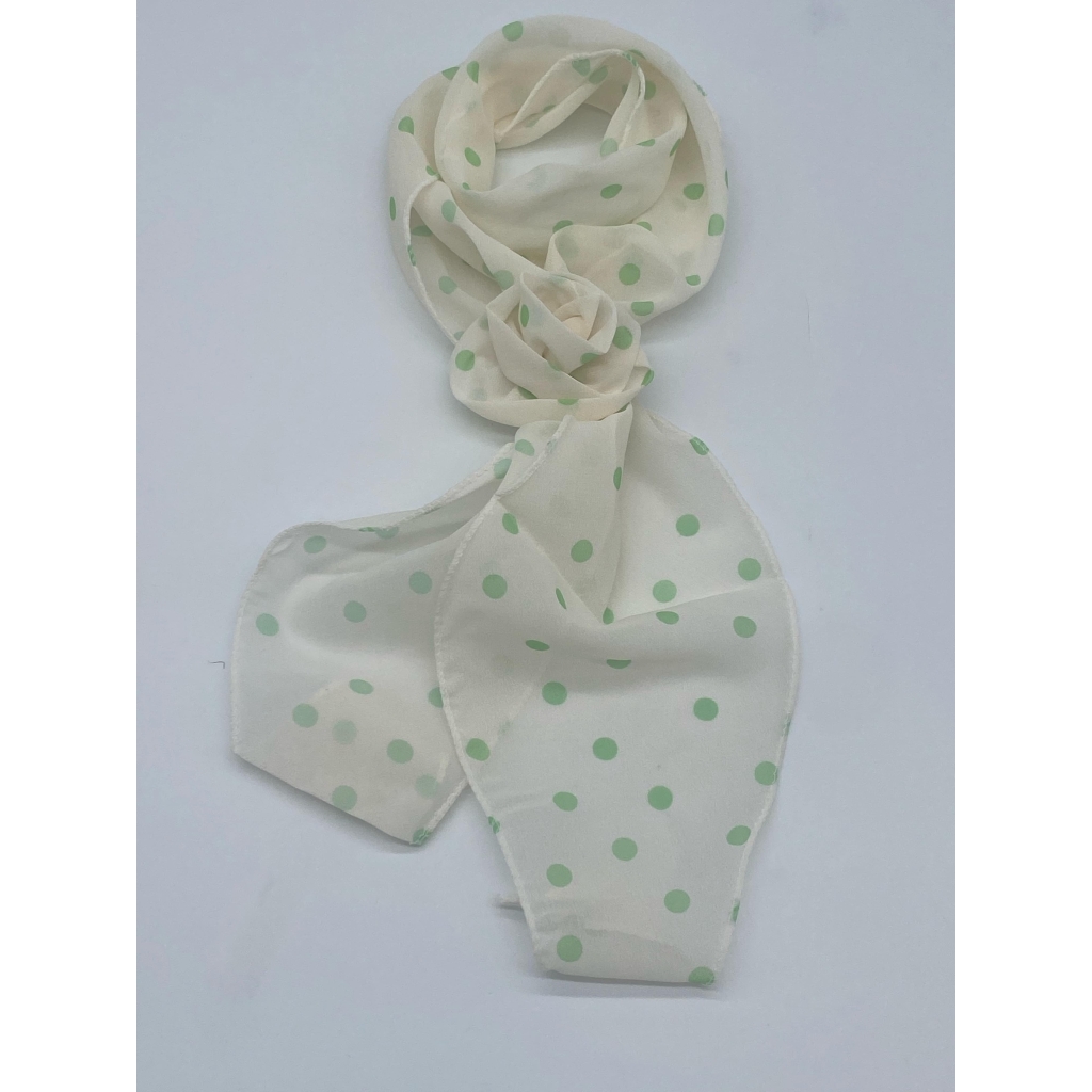 Skjerf med blomst/brosje off white m rosa prikker